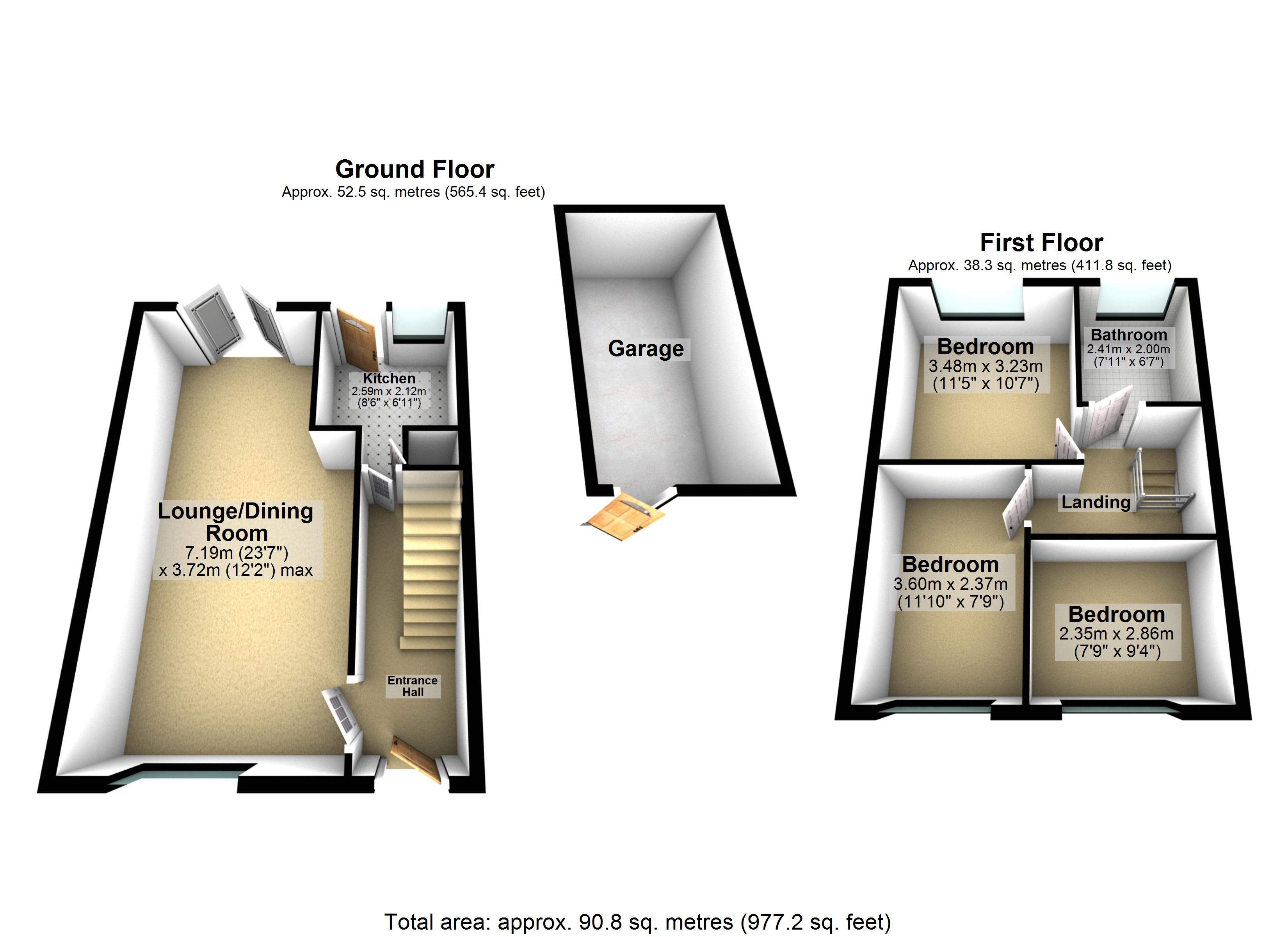 Internally the accommodation covers approximately just over 975sqft of living space, comprising of entrance hallway, OPEN PLAN LIVING/DINER, modern fitted kitchen, THREE BEDROOMS and family bathroom suite.