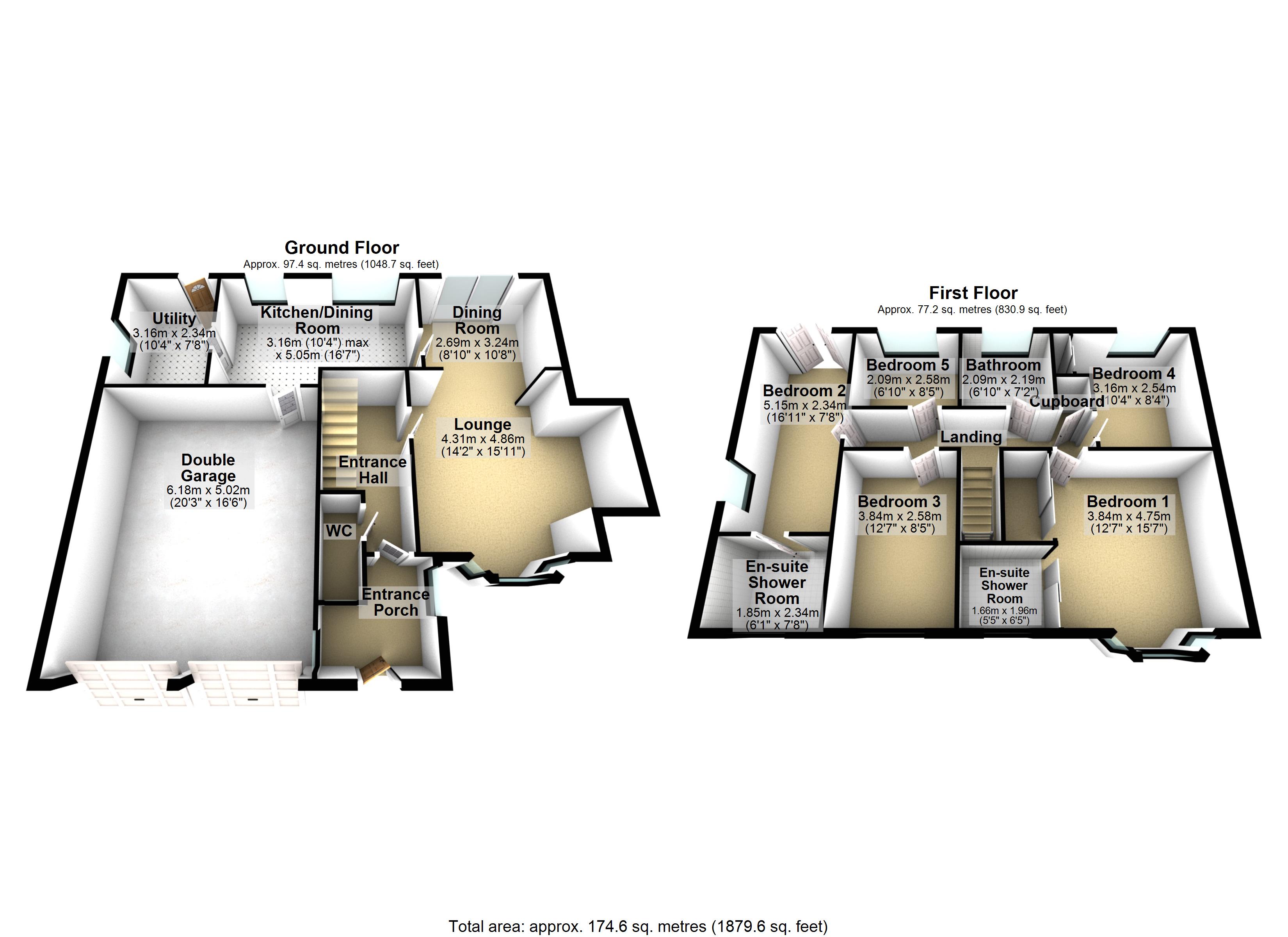 Internally the accommodation covers approximately just over 1875sqft of VERSATILE living space, comprising of entrance porch, living room opening to dining room, kitchen/diner, utility, FIVE BEDROOMS, TWO EN SUITE and family bathroom suite.