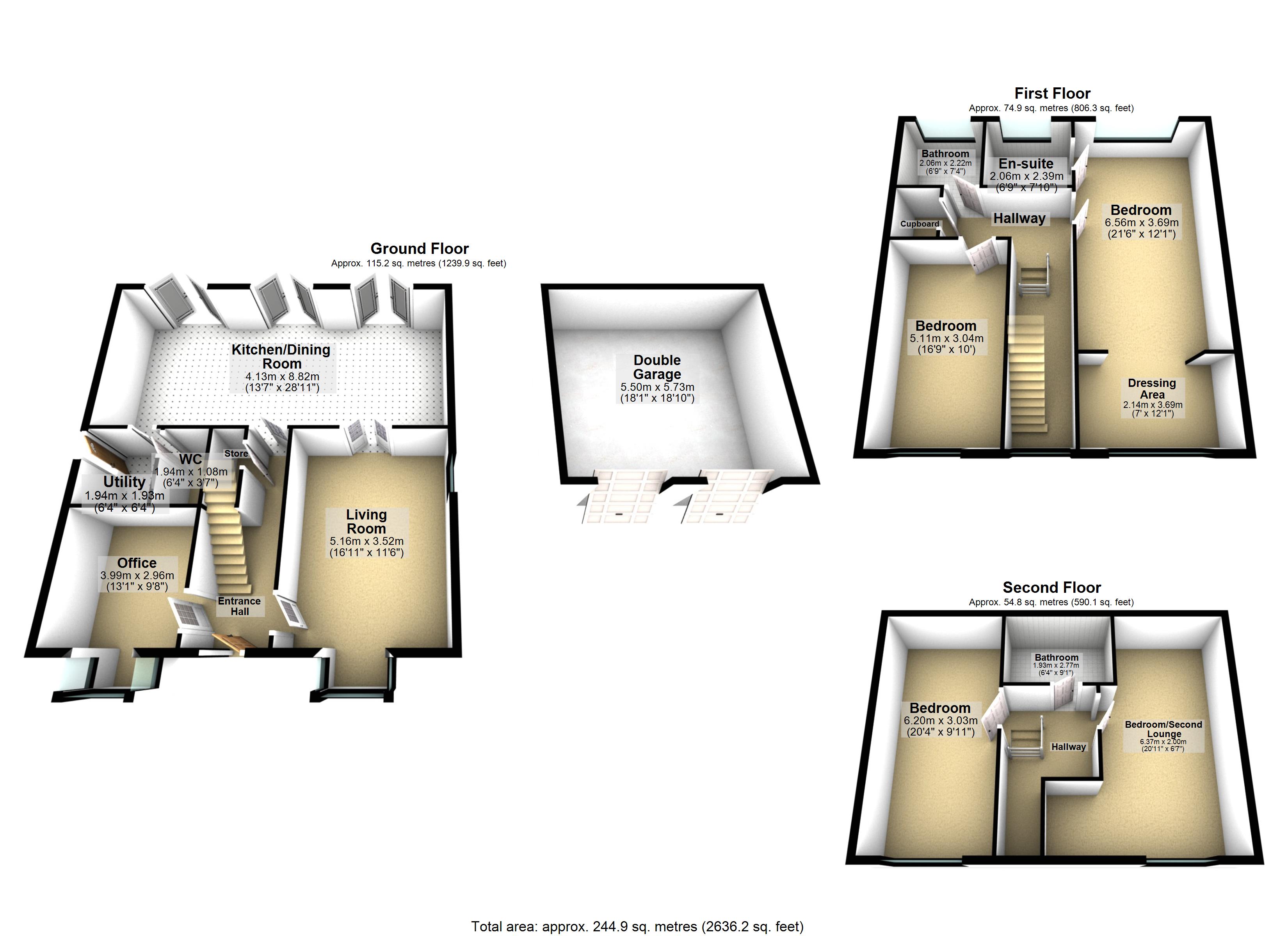 Internally the accommodation covers approximately 2635sqft of VERSATILE living space over THREE FLOORS and boasts QUALITY FIXTURES AND FITTINGS installed throughout, comprising of entrance hallway, lounge, STUNNING MODERN OPEN PLAN KITCHEN/DINER, office, utility and w.c. To the first floor reveals TWO DOUBLE BEDROOMS with the master possessing an en suite and DRESSING ROOM (formally bedroom five and a DELUXE FAMILY BATHROOM SUITE. To the second floor can be found TWO FURTHER DOUBLE BEDROOMS and second bathroom.
