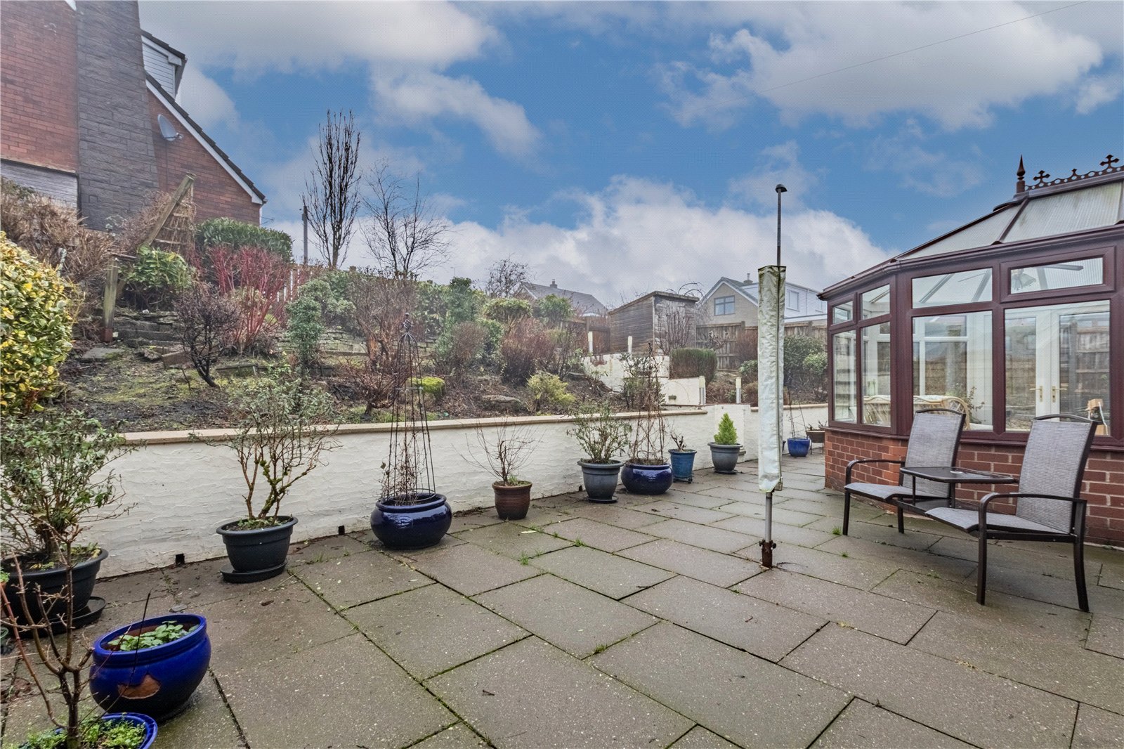 Externally the property stands on a GENEROUS CORNER PLOT and provides AMPLE OFF ROAD PARKING with driveway leading to garage. To the rear reveals an ATTRACTIVE PRIVATE TIERED GARDEN with large paved patio and well stocked surrounding borders.