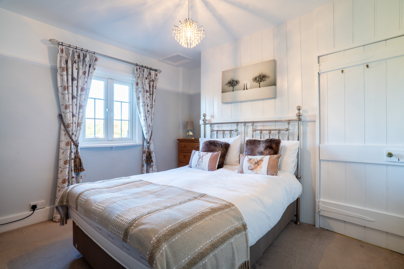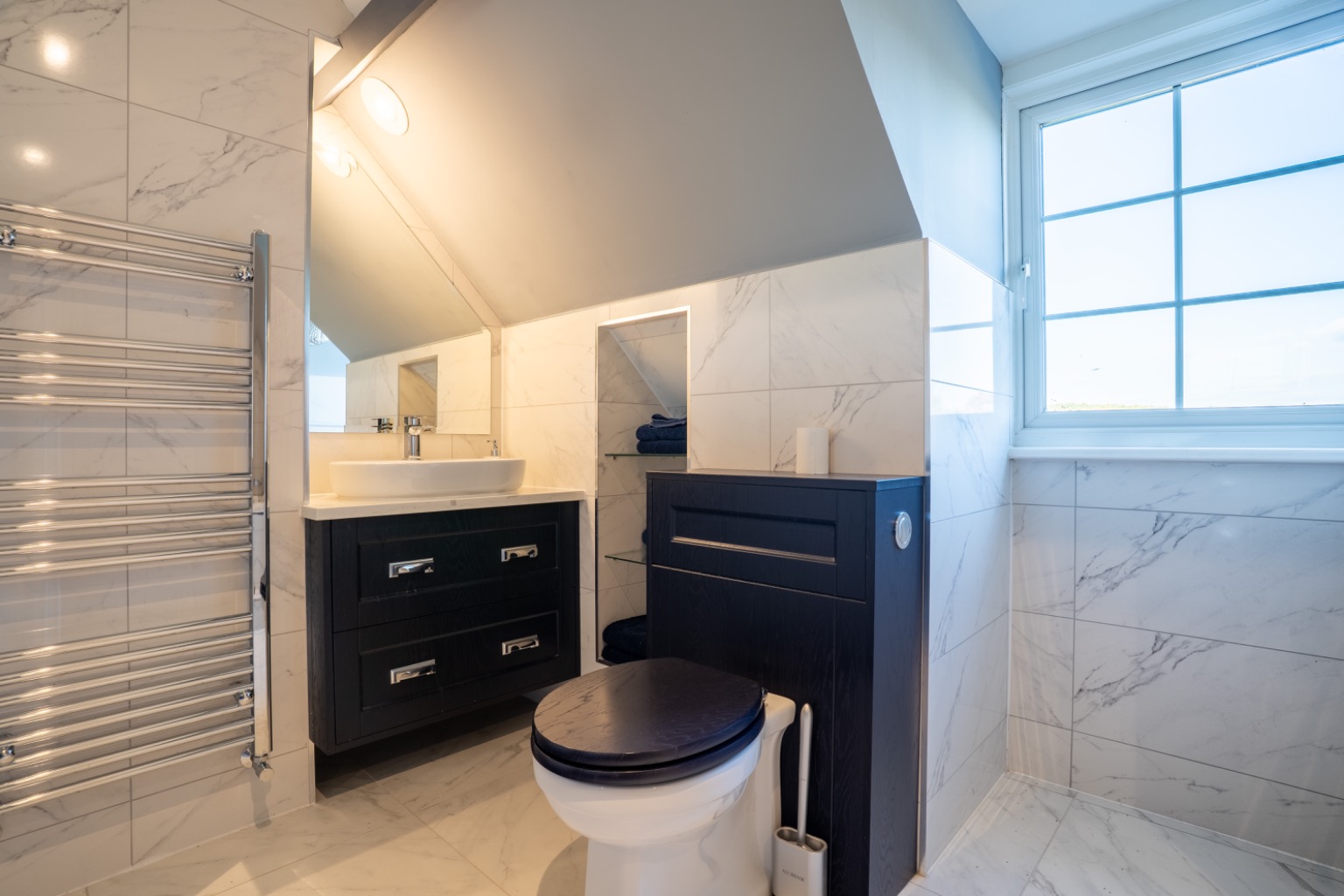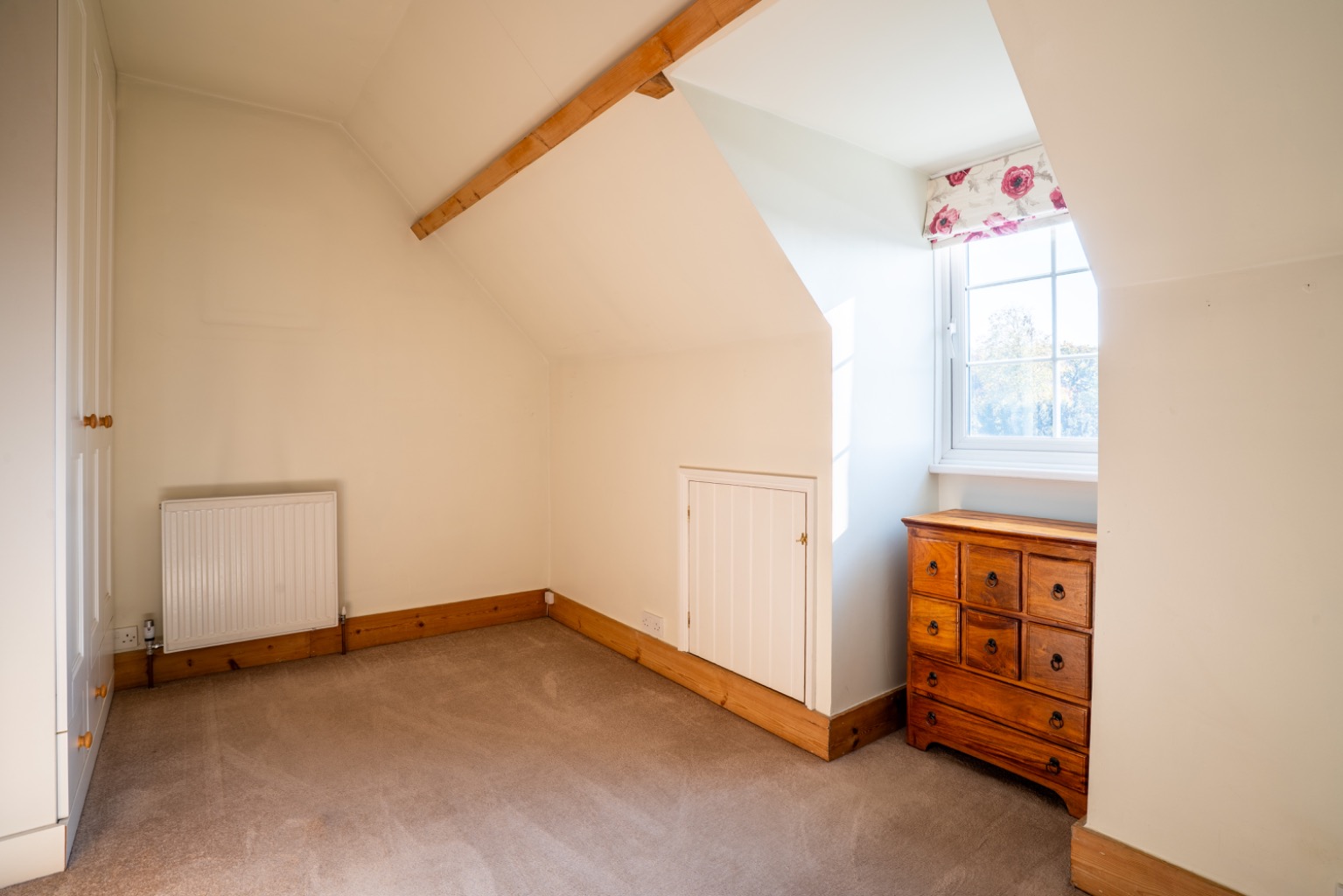 Upstairs, the first floor hosts two well-proportioned double bedrooms, while the top floor features the third bedroom and a beautifully upgraded family bathroom with a four-piece suite. Large windows throughout the home flood each room with natural light and frame idyllic views across open fields.