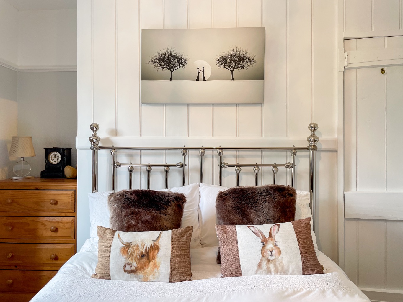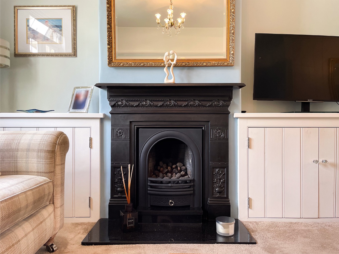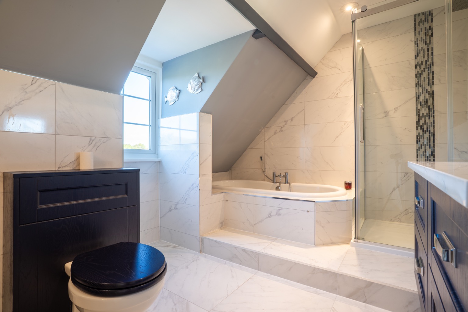 Upstairs, the first floor hosts two well-proportioned double bedrooms, while the top floor features the third bedroom and a beautifully upgraded family bathroom with a four-piece suite. Large windows throughout the home flood each room with natural light and frame idyllic views across open fields.