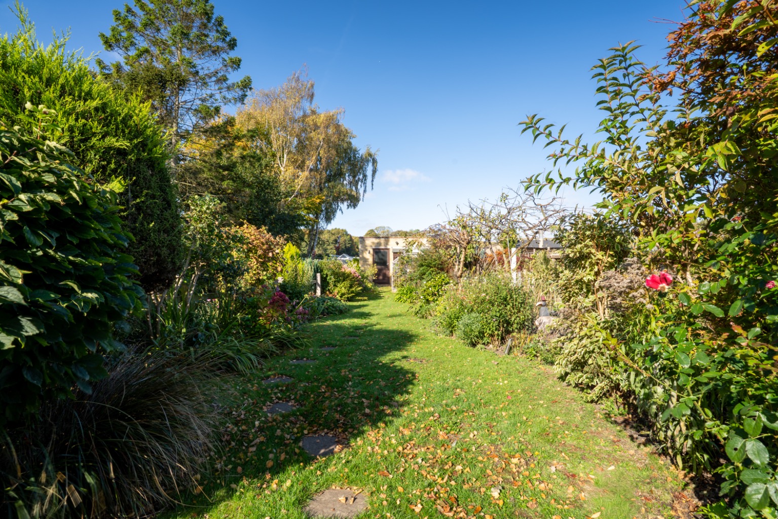 The rear garden is a generous private haven—well-stocked with mature shrubs and flowers—offering the perfect setting for al fresco dining or unwinding in the sun. A large garage and ample parking complete the package.