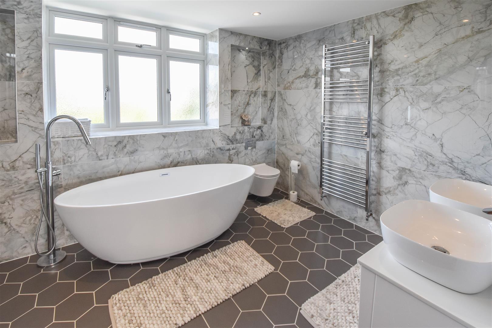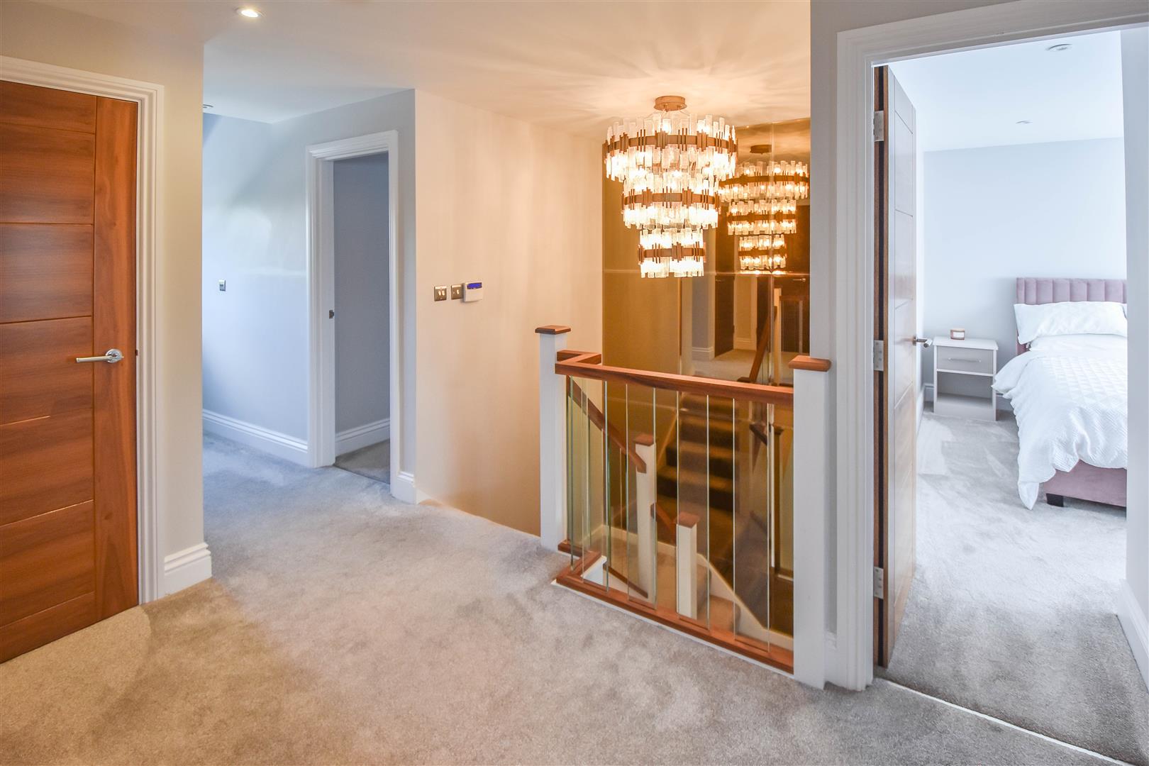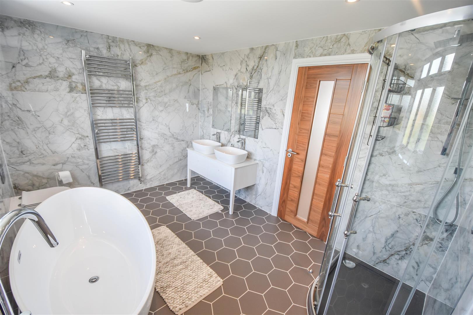 Overall, there are FIVE double bedrooms, three of which are located on the first floor. The master bedroom is a lovely room with a walk-in dressing area with fitted wardrobes to each side. The dressing area leads to an en-suite bathroom with modern freestanding bath, his and hers wash hand basins, close coupled w.c. plus a separate corner shower cubicle with overhead rainfall shower and handheld attachment. This room has a beautiful and stylish hexagonal, dark tiled floor and marble effect tiling to the walls. There is a further en-suite shower room on this level along with a modern family bathroom. The first-floor landing has a double airing/linen cupboard and a further set of stairs which rise to the second-floor level where you have two further bedrooms, both with en-suites and a range fitted wardrobes.