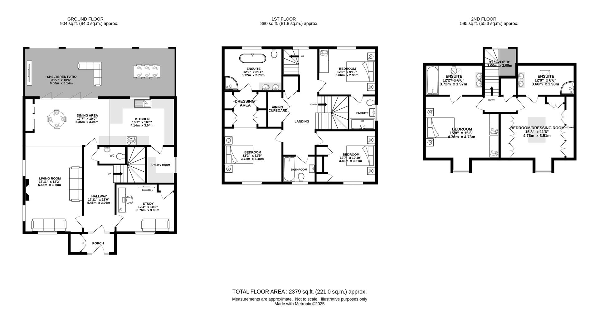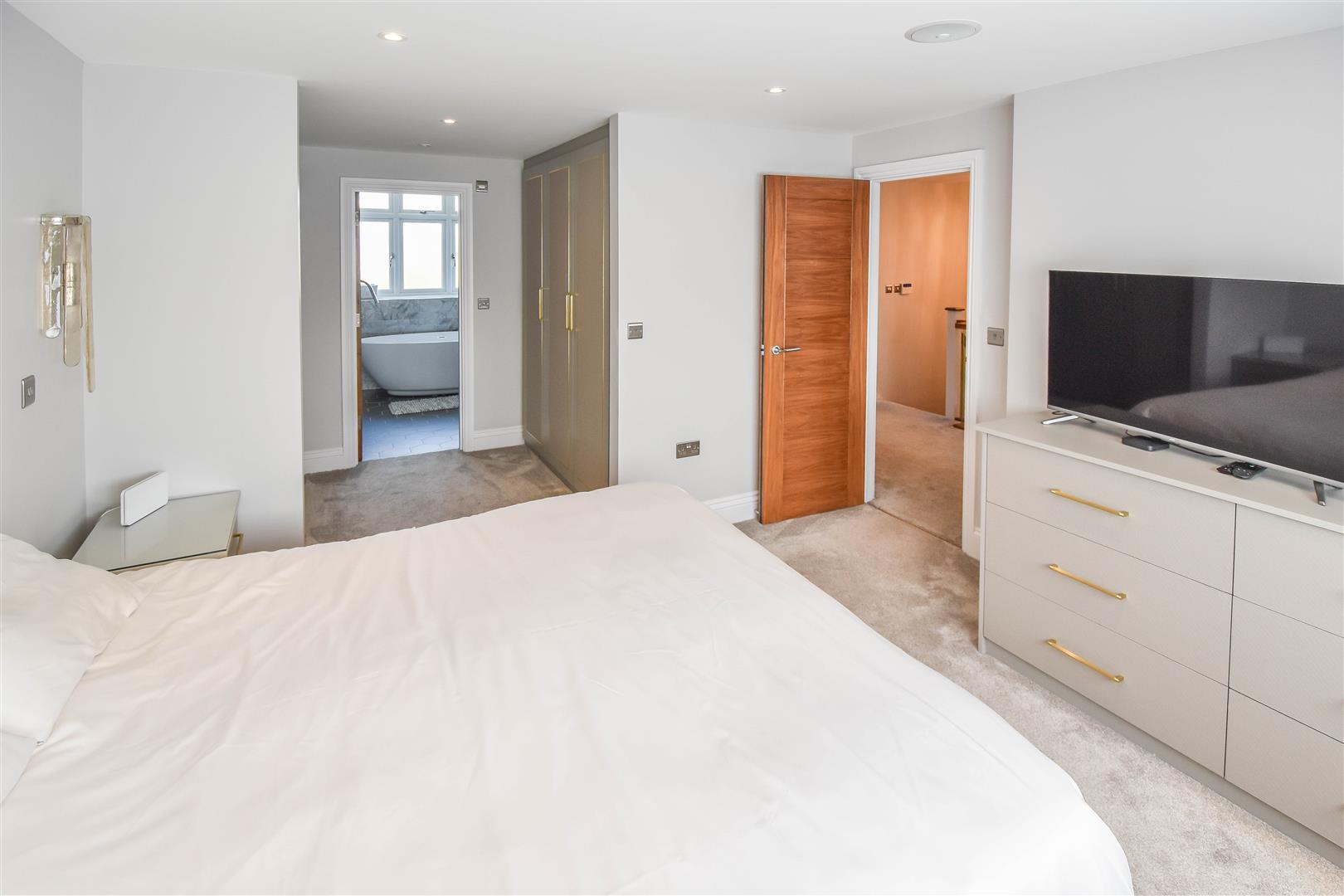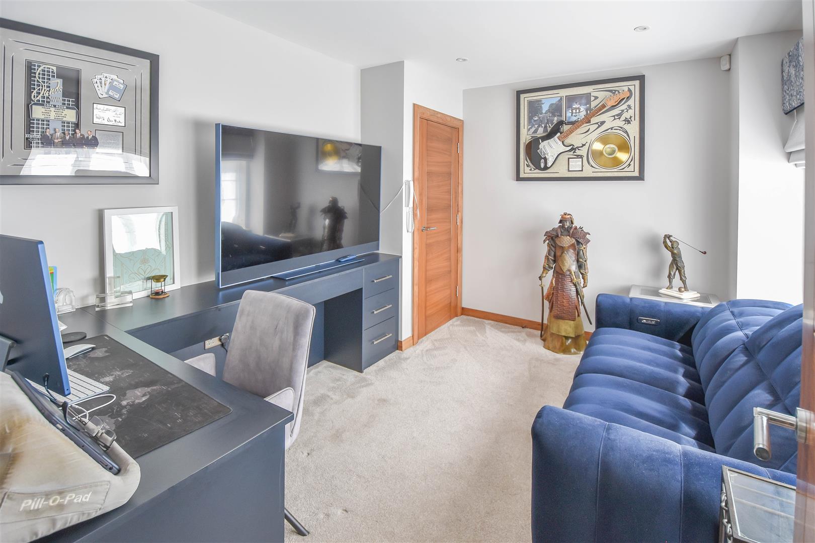Overall, there are FIVE double bedrooms, three of which are located on the first floor. The master bedroom is a lovely room with a walk-in dressing area with fitted wardrobes to each side. The dressing area leads to an en-suite bathroom with modern freestanding bath, his and hers wash hand basins, close coupled w.c. plus a separate corner shower cubicle with overhead rainfall shower and handheld attachment. This room has a beautiful and stylish hexagonal, dark tiled floor and marble effect tiling to the walls. There is a further en-suite shower room on this level along with a modern family bathroom. The first-floor landing has a double airing/linen cupboard and a further set of stairs which rise to the second-floor level where you have two further bedrooms, both with en-suites and a range fitted wardrobes.