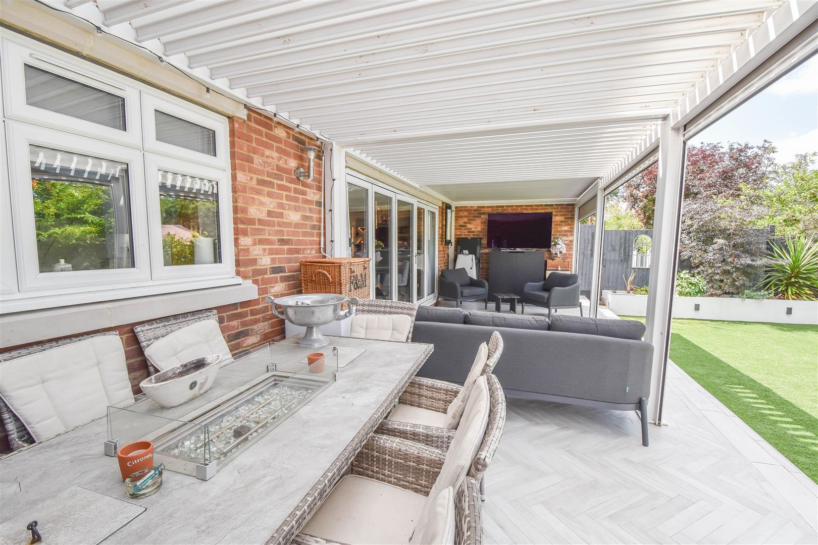 Externally, you have a low maintenance landscaped rear garden with artificial lawn and raised flower beds, well-stocked with a good selection of plants and shrubs. For garden storage there is a composite storage shed which will remain. To the immediate rear of the property there is a fabulous sheltered/covered patio area (31'2 x 10'4) with adjustable roof shutters and drop-down blinds, allowing you to fully enjoy the garden all year round. There is pedestrian access on either side of the property which give convenient access to the front. Here you will find a large block paved driveway which provides excellent off-street parking for several vehicles. The property also comes with a full alarm system with CCTV for peace of mind.
