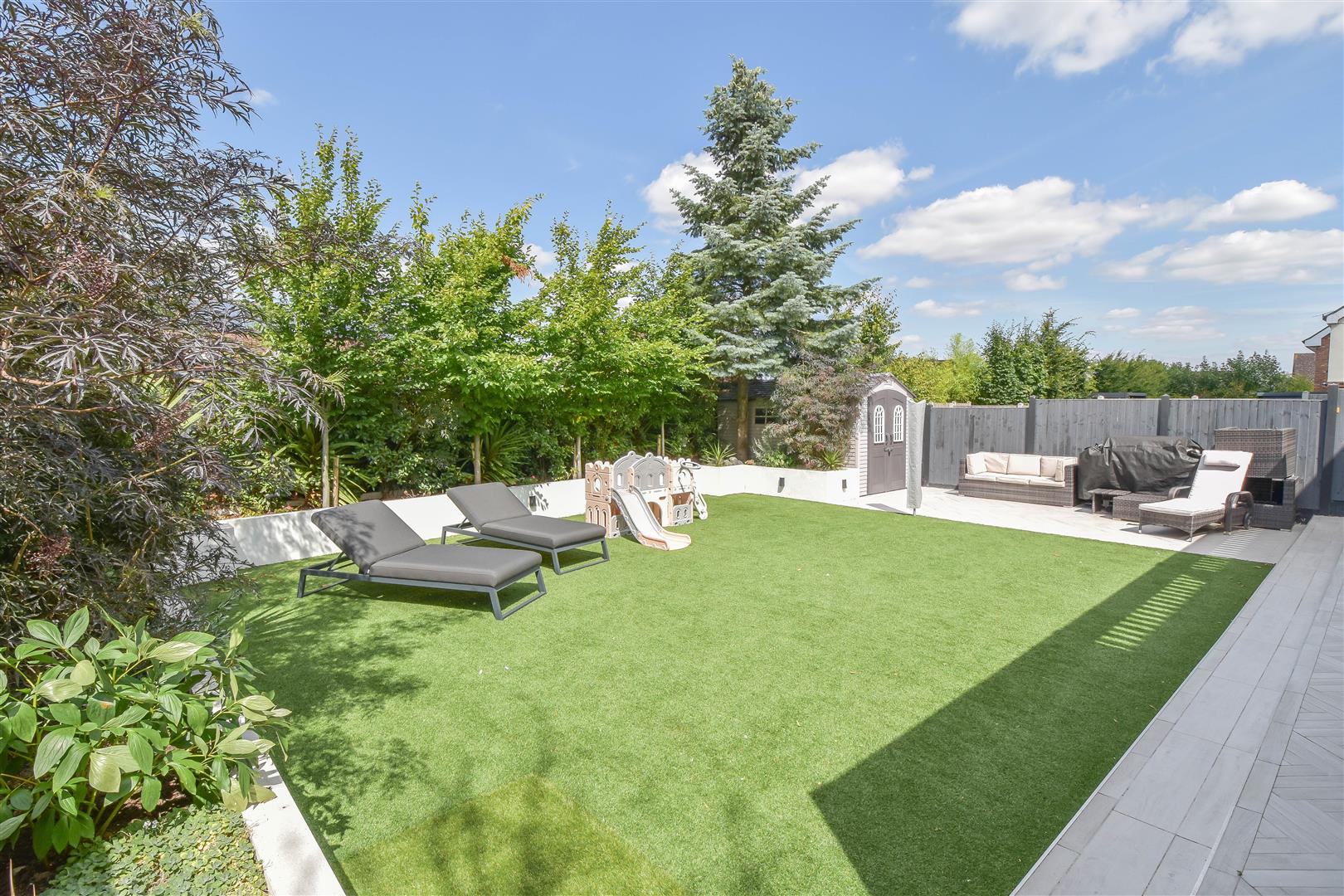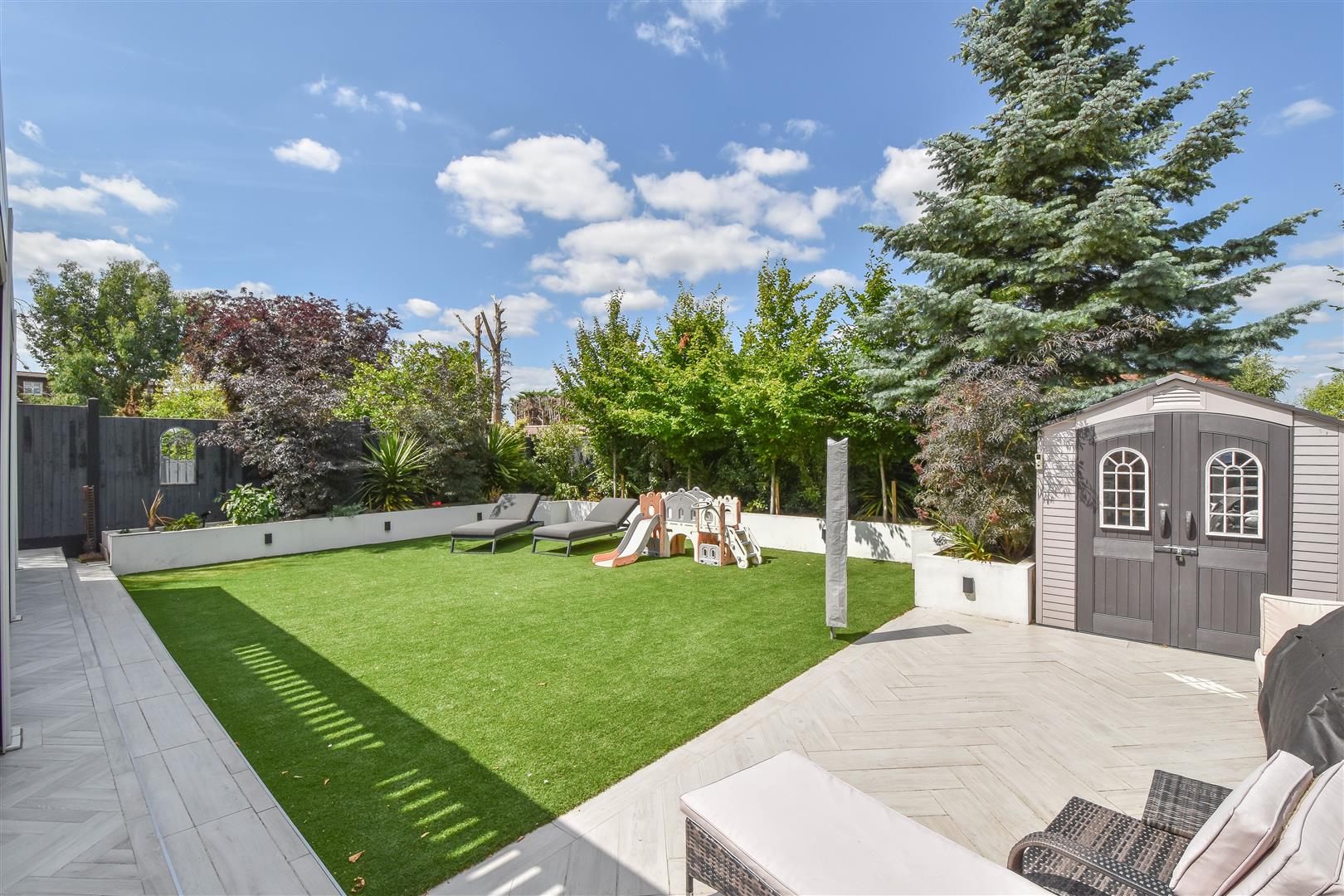 Exterior - Rear Garden - Easy to maintain garden with artificial lawn and raised flower beds. Composite storage shed to remain. Patio area.