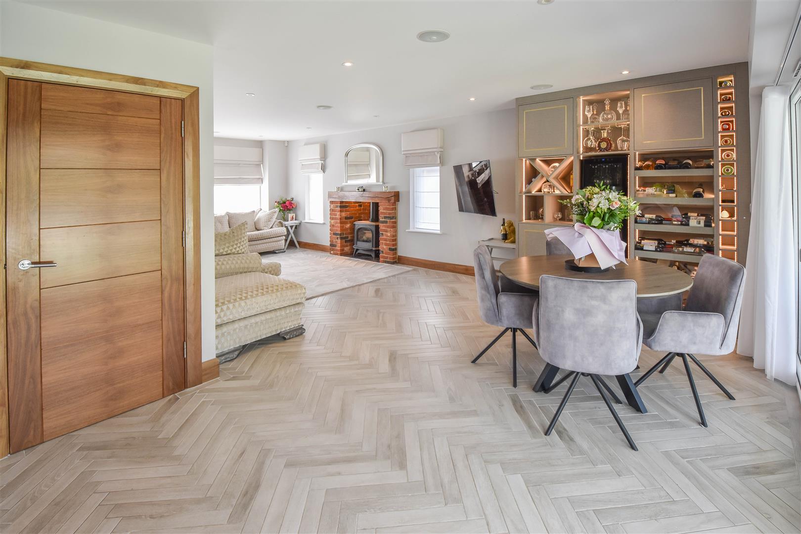 Dining Room - 5.36m x 3.05m (17'7 x 10') - Bi-folding doors onto covered patio. Built-in wine chiller with glass display / storage and shelving. Open plan to :