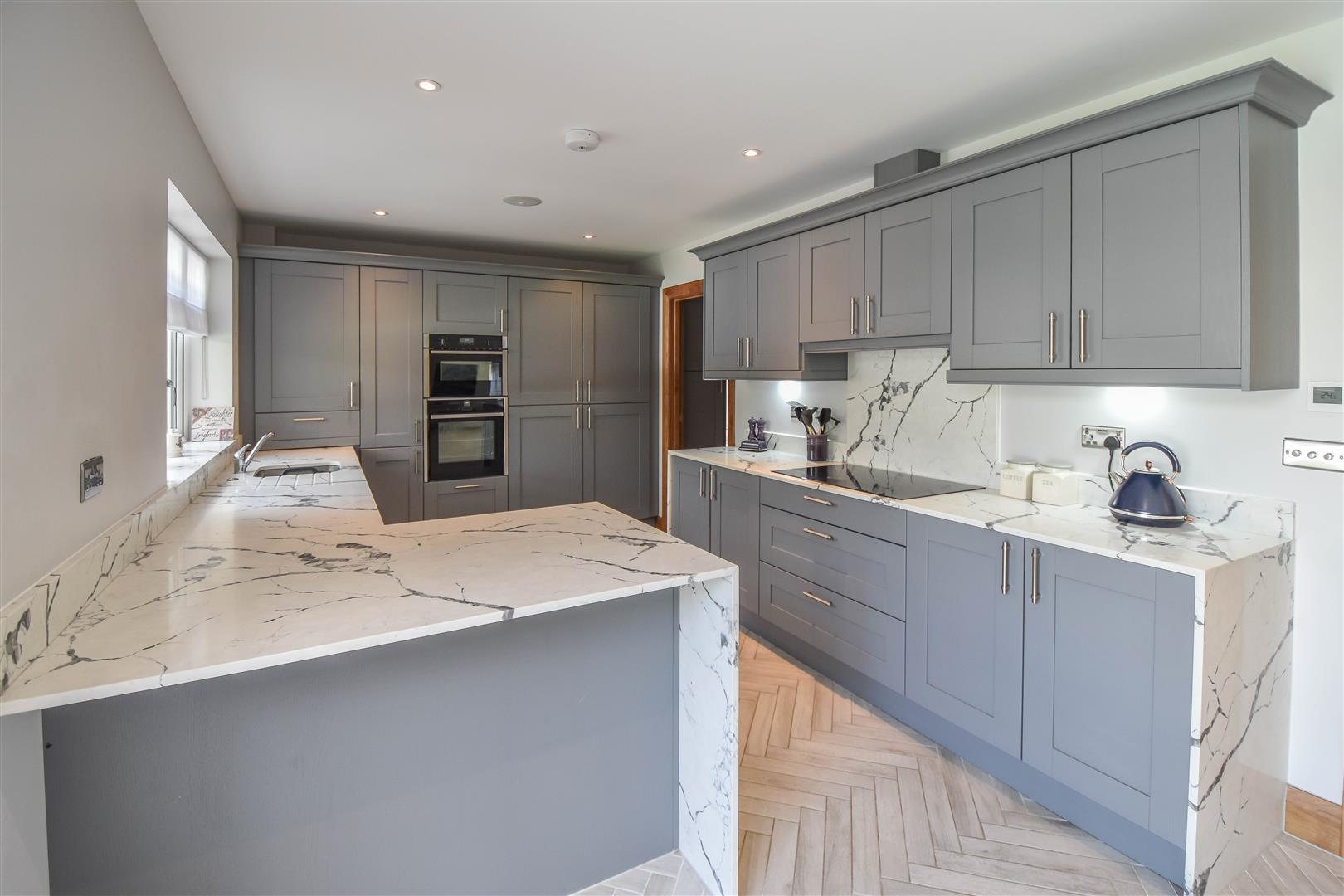 Kitchen - 4.14m x 3.05m (13'7 x 10') - Shaker style wall and base units with quartz work surfaces over. Integrated appliances to include double oven, induction hob with extractor above, dishwasher, microwave and fridge freezer. Door to :