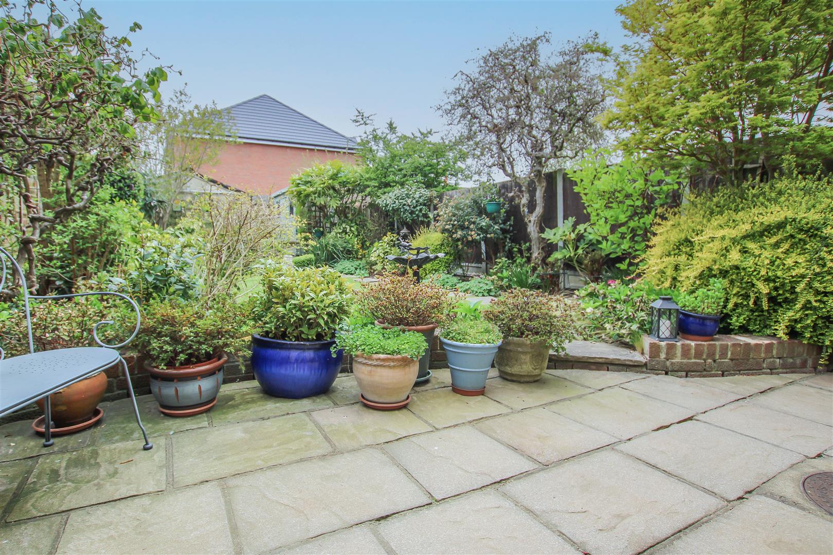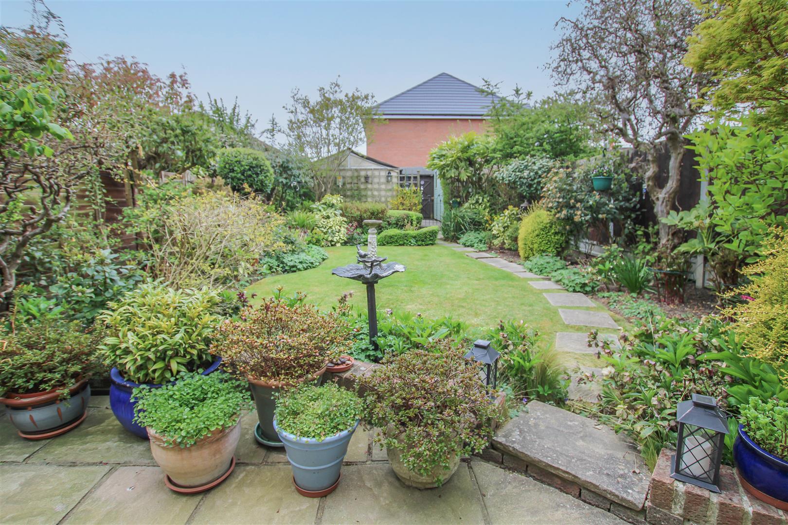 Externally, the rear garden begins with a paved seating area, leading to a beautifully landscaped space framed by mature shrubs and vibrant planting-an ideal setting for relaxation or outdoor dining. To the front, a neatly maintained lawn with mature borders enhances the home's kerb appeal. Additional benefits include a detached garage offering valuable storage space, as well as off-street parking.