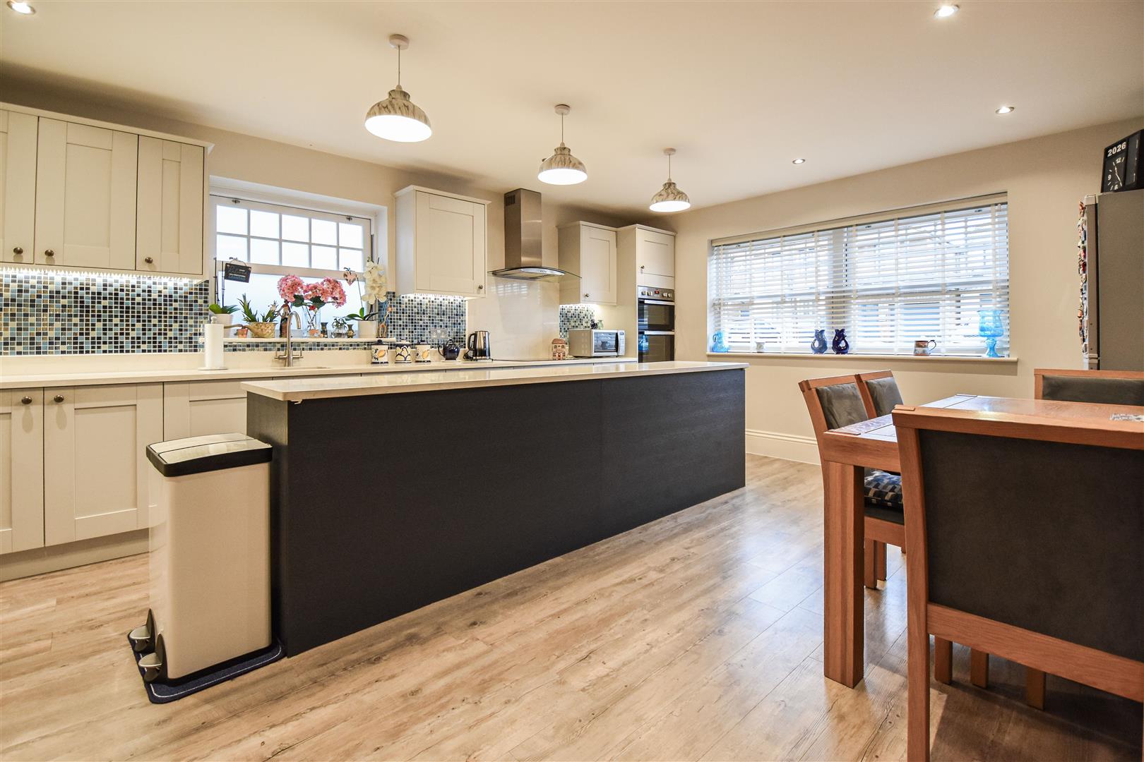 Kitchen / Diner - 6.02m x 4.45m (19'9 x 14'7) - Fitted in a range of modern wall and base units with quartz work surfaces over. Long, central island unit providing additional work surface and storage. Integrated double oven and hob with extractor above, fridge/freezer and space for additional appliances. Door to :