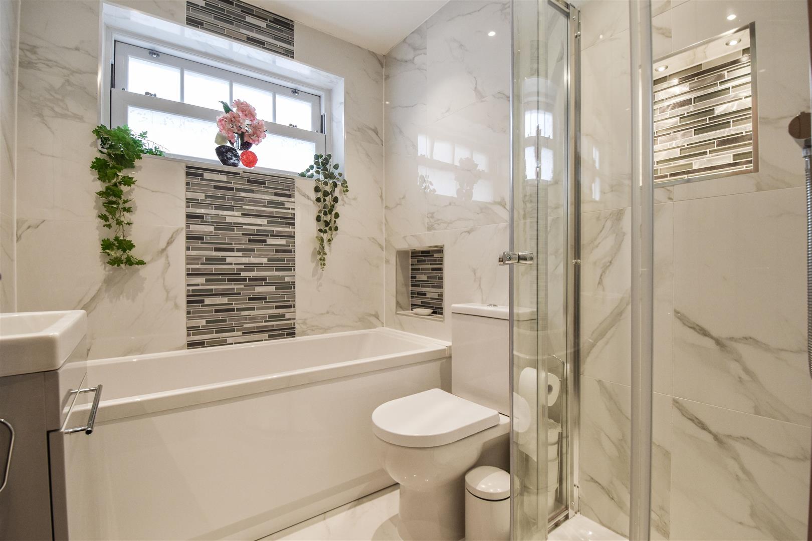 Family Bathroom - Fully tiled. Comprising : panelled bath, separate corner shower cubicle, wash hand basin and w.c.