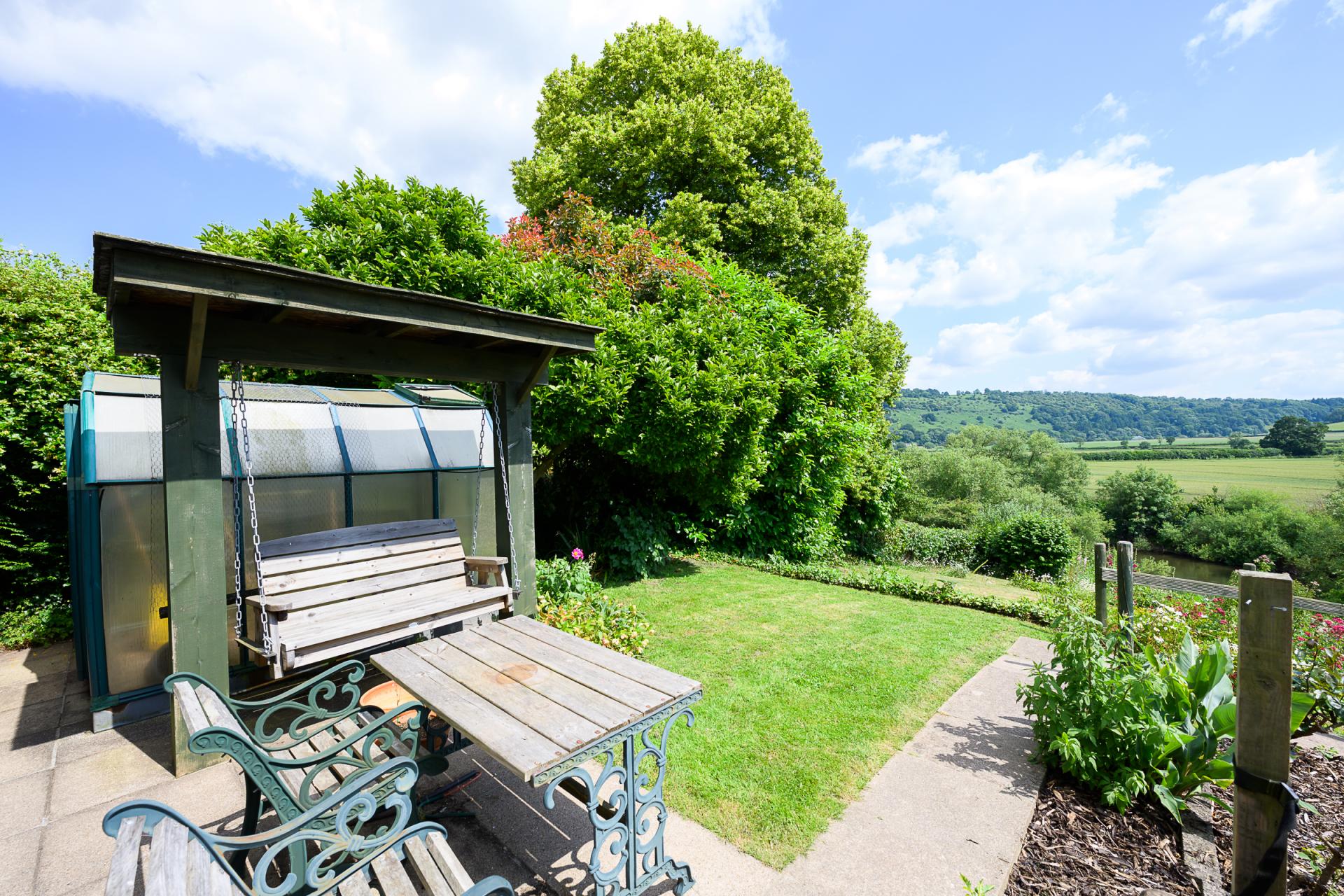 A large patio stretches across the rear side of the home and in one corner, a substantial swing seat has been built into the ground, giving a perfect spot to bask in the evening sunlight.