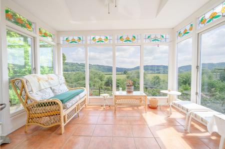 Presently, there are five reception rooms, two of which serve as substantial sitting rooms, each boasting fireplaces as well as phenomenal views of the Wye Valley. Of the other reception rooms, one is utilised as a formal dining room - and exhibits the spellbinding landscape wonderfully well - another is a peaceful, triple-aspect garden room and the smallest operates as a quiet office.