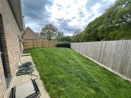 A side gateway gives access into the large rear garden which is laid to lawn and enclosed by fencing. The property has a large sandstone patio area and pathways around the house.