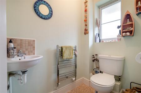 Cloakroom - 1.65m x 1.14m (5'5 x 3'9) - WC, sink, chrome heated towel rail, extractor fan, front aspect frosted window.