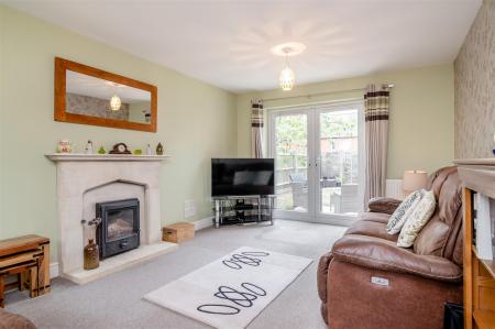 Lounge - 5.36m x 3.40m (17'7 x 11'2) - Stone fireplace housing inset cast iron log burner, telephone point, TV point, two radiators, front aspect window, rear aspect double opening French doors to patio and gardens.