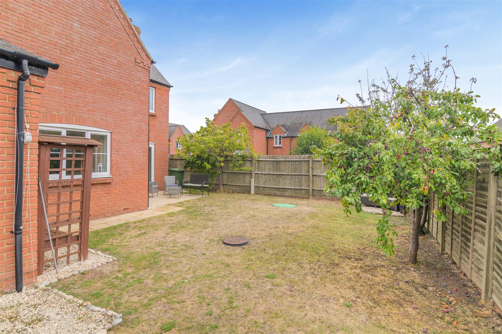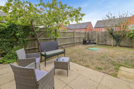 The rear garden comprises of a patio seating area. The main part of the garden is laid to lawn with several fruit trees, further gravelled seating area, SUMMER HOUSE (8'0 x 7'8) with power points, all enclosed by wood panel fencing.