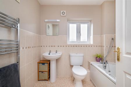 Bathroom - 2.26m x 1.96m (7'5 x 6'5) - Three piece suite comprising panelled bath with mixer tap and shower detachment, WC, wash hand basin, shaver light point, extractor fan, chrome heated towel rail, side aspect frosted window.