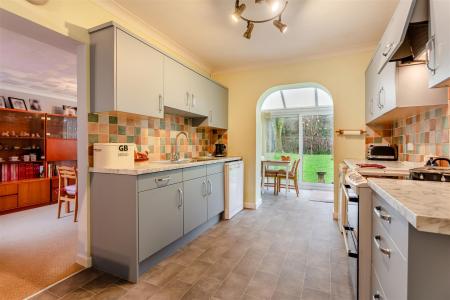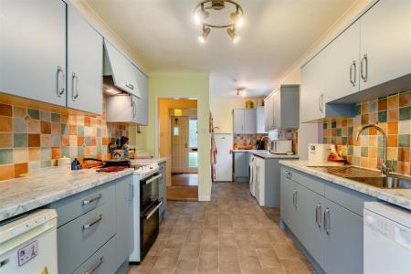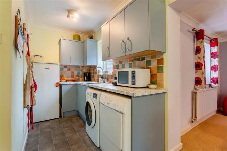 Utility Area - Sink unit with mixer tap, cupboard under, range of base and wall mounted units, plumbing for washing machine, space for tumble dryer, side aspect window.