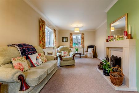 Living Room - 7.29m x 3.48m (23'11 x 11'05) - Open fireplace, raised hearth, mantle over, two single radiators, side and front aspect windows, UPVC double glazed French doors through to the south east facing private rear garden.