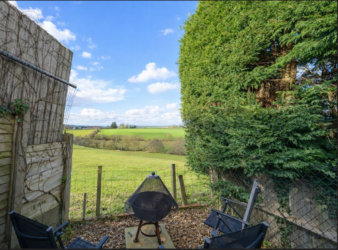 The rear garden offers a wonderfully immersive slice of the surrounding countryside. Extending to approximately a quarter of an acre, the grounds are a true sensory delight, filled with birdsong and enriched by the fragrance of roses and mint growing in abundance. A self-regulating greenhouse with a water supply provides excellent scope for homegrown produce, with raspberries, blackberries and blueberries thriving in season. Positioned at the far end of the garden is a substantial brick-built, timber-clad outbuilding, complete with a concrete floor and electricity supply. There is also a pottery studio with a window framing a glorious outlook across the Garron Valley, where sheep can often be seen grazing the rolling farmland beyond. Three distinct seating terraces are thoughtfully positioned throughout the garden, which ensure that every angle can be admired. In addition to welcoming flagstone patio beyond the kitchen, tucked further into the garden, a raised slate terrace sits gently elevated, surrounded by generous drifts of vibrant, seasonal blooms that create a sense of colour and seclusion. In the far corner, a rustic woodchip firepit area provides a more intimate retreat, where you can gather at dusk and enjoy uninterrupted, far-reaching views across to Garway and Orcop.