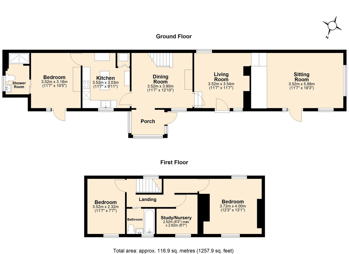 The top floor accommodates two more bedrooms, one of which serves as the generous and dual aspect master bedroom. There is also a third room on this level, which could be used as either a study or a nursery. Also on the top floor, there is a family bathroom which is equipped with a three-piece suite.
