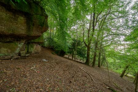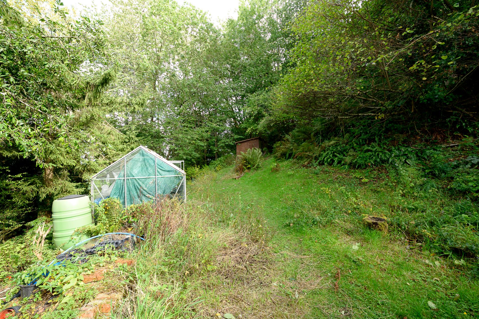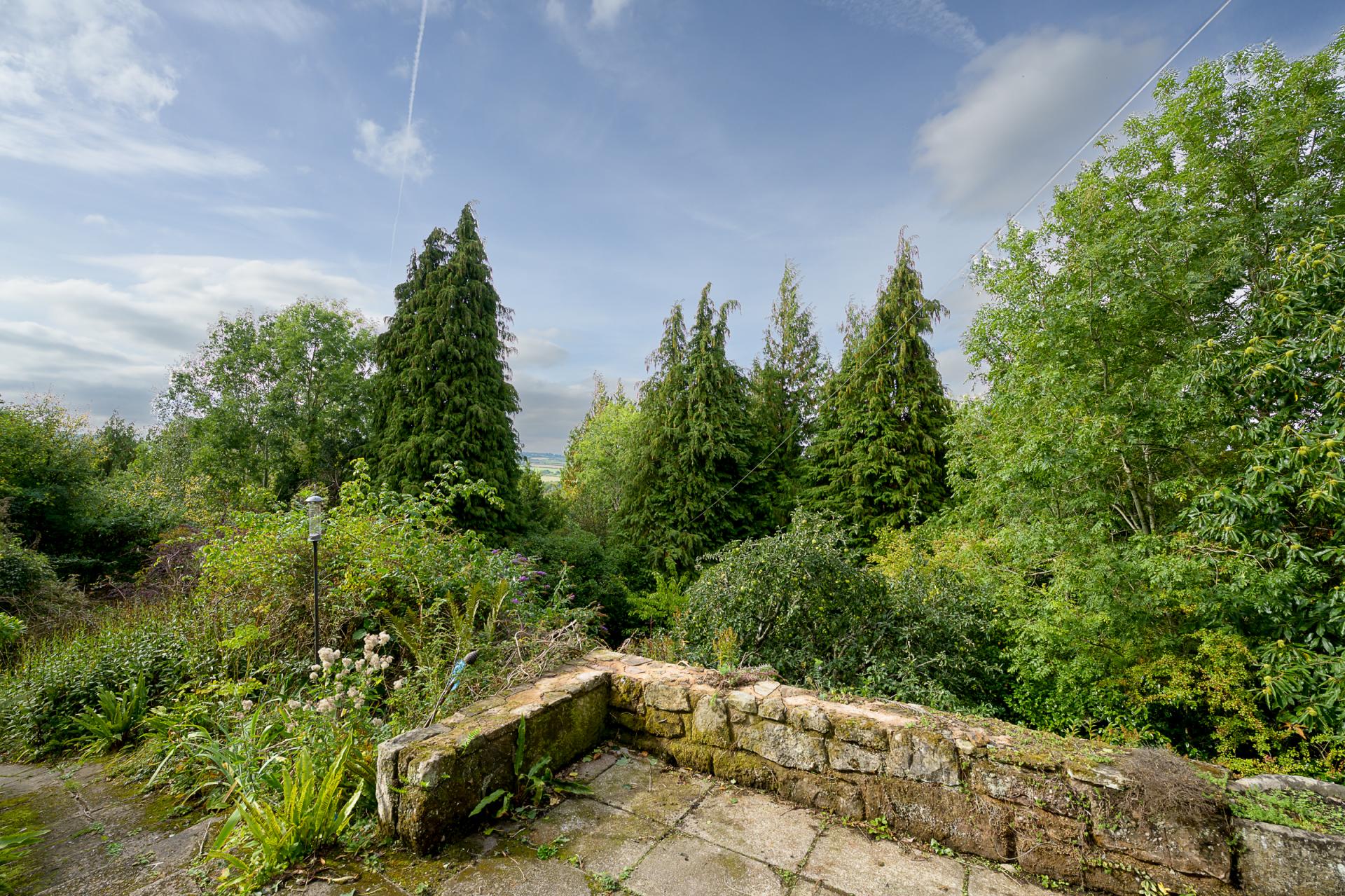 This hillside hideaway is tucked away in a secluded corner of the countryside. Its grounds of around two-and-a-half acres serve as a private woodland escape, with springtime carpets of bluebells, rocky outcrops, a kitchen garden and various fruit trees adorning the expanse. A generous sun terrace stretches along nearly the entire length of the home, presenting a good spot to enjoy barbecues and the magnificent surroundings.