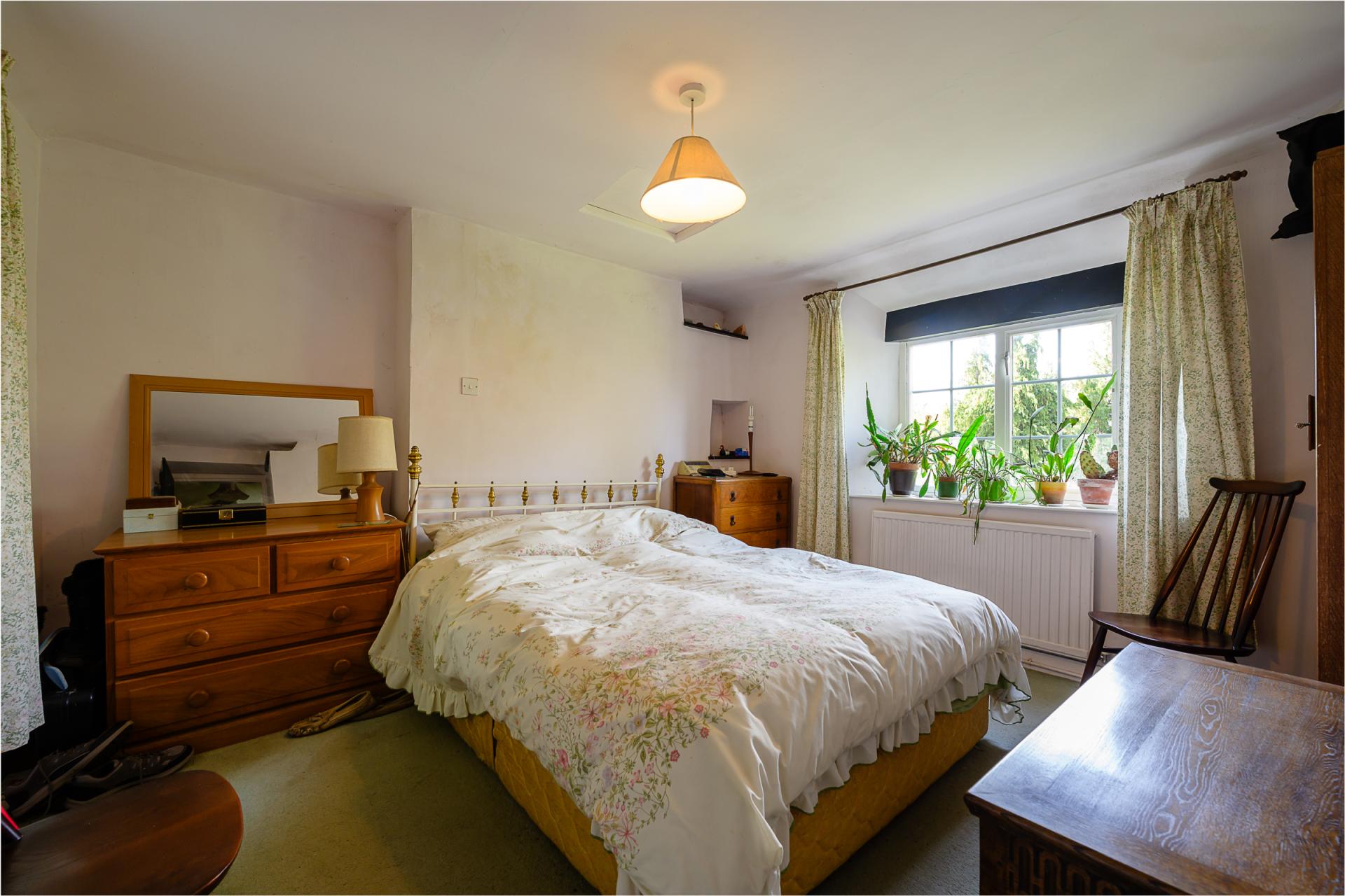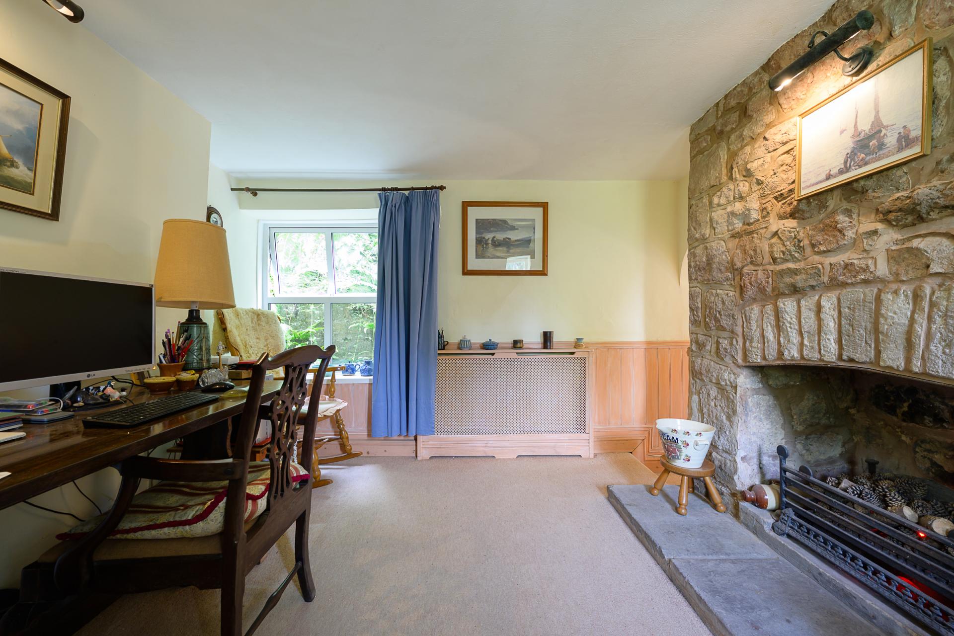 Inside, the home boasts a wealth of charming rustic features such as exposed beams, quirky elevation changes, and exposed stone. While the cottage carries several striking features, there is an opportunity for the next custodian to put their own stamp on the property.