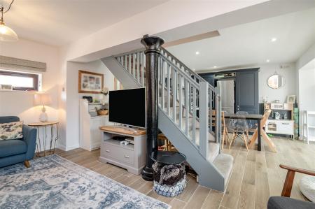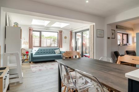 The property has recently been extended to provide a second sitting area with rear aspect window, two Velux roof lights, inset spotlighting, side aspect bi-folding doors to patio and gardens, stairs leading off. Opening through to: