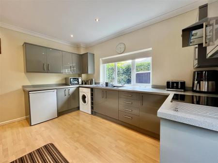 Outside - The property is situated in a corner plot with a mostly hedging surround providing privacy. The driveway parking for one vehicle is situated to the rear along with a timber cabin ideal as a potential home office/workshop. A path leads around the property with low maintenance garden laid to decking to the front and side.