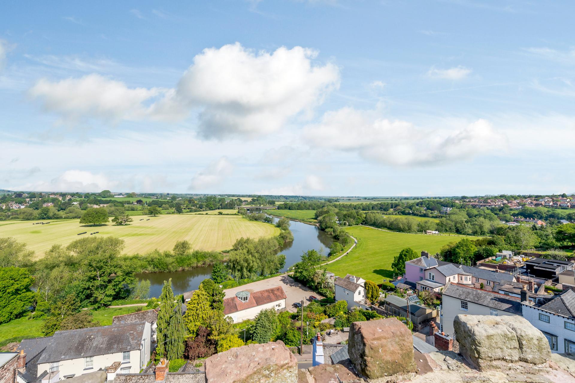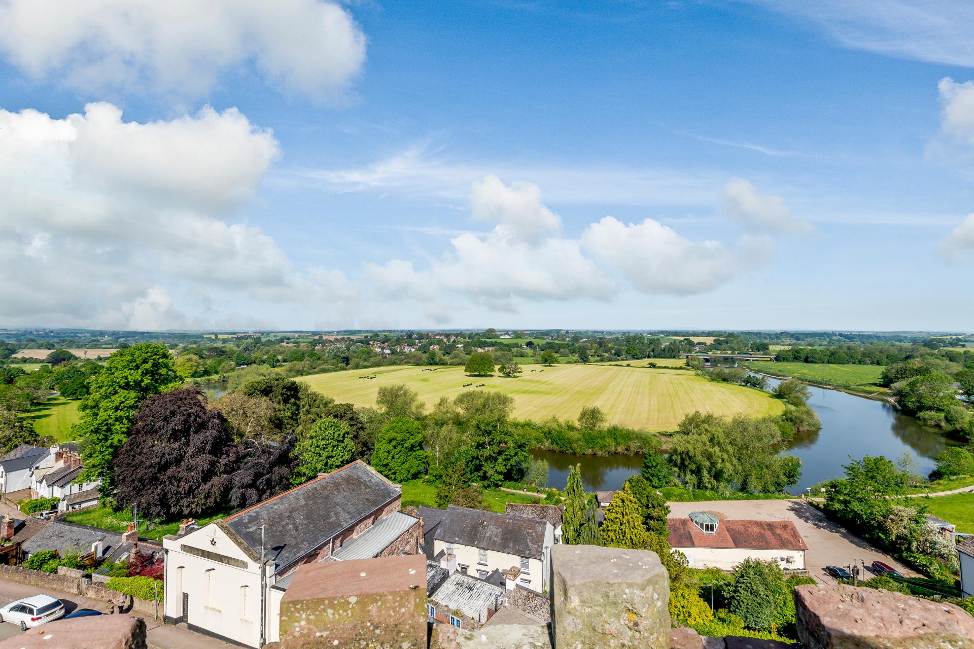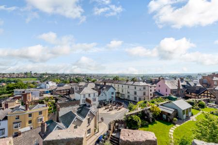 The bedroom on the second floor looks out to a spectacular outlook from the historic windows and a stone arch in the wall has been utilised as a built-in wardrobe. The double bed houses a bath underneath, so a new owner could utilise this feature if they were to install a spring-loaded bed. This room also includes an en-suite wetroom and another spiral staircase snakes up to the battery-operated roof hatch which boasts its breathtaking panoramic view of Ross-on-Wye and the surrounding countryside over the tower's turrets. Athletes from Ross Rowing Club can frequently be seen gliding down the River Wye.