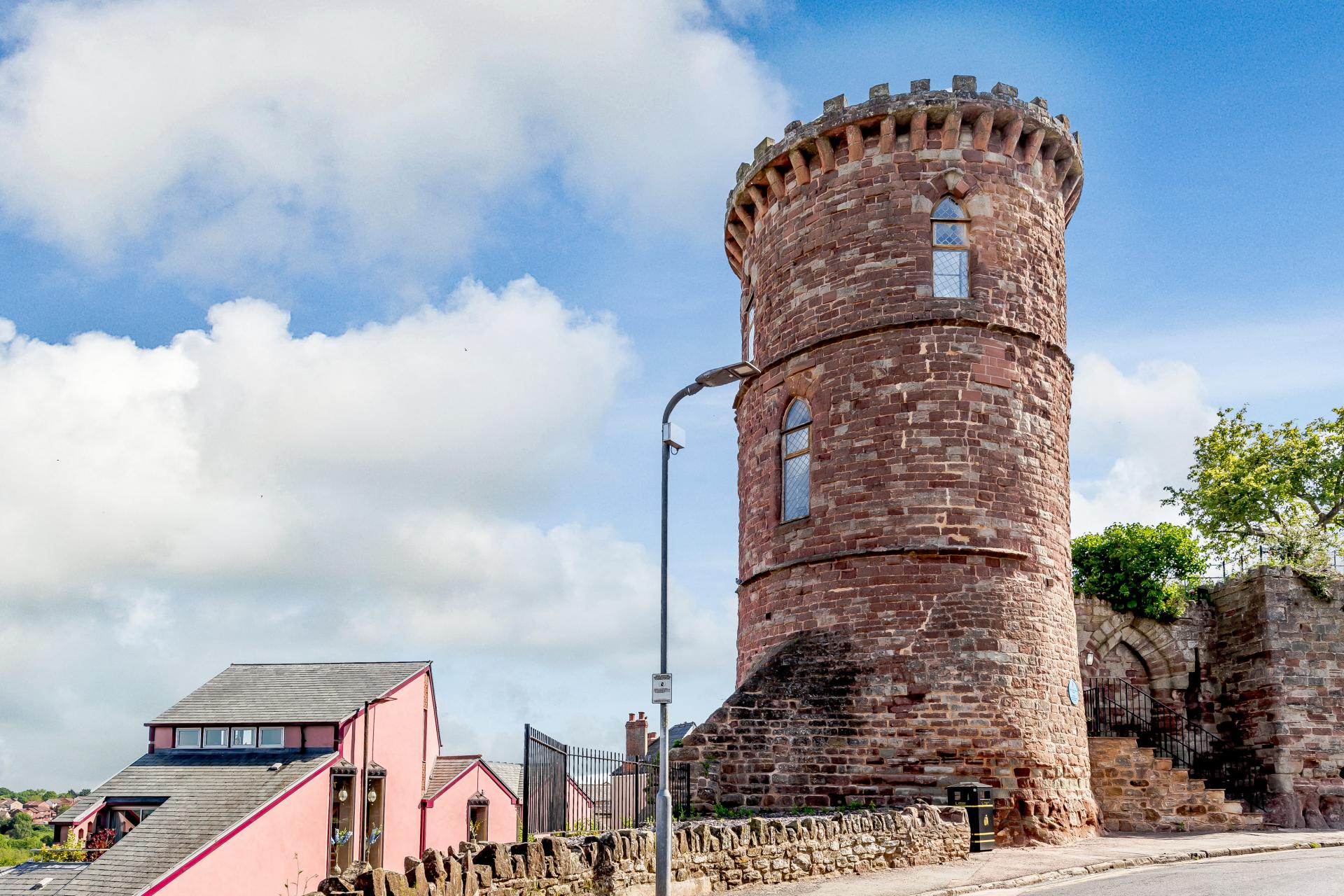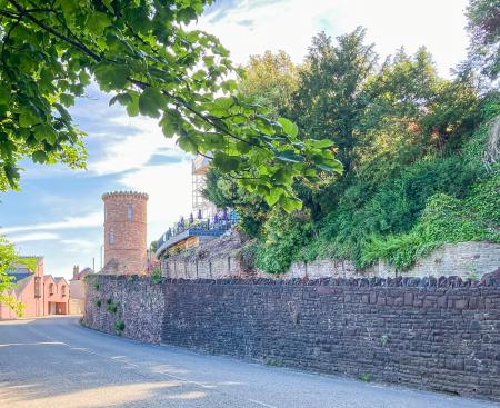 Continue past the red sandstone cliffs then turn right onto St Mary's Street. The Gazebo Tower is situated opposite The Royal Hotel.