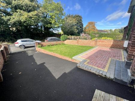 Outside - The property is accessed via a pair of metal gates with a tarmac driveway suitable for parking up to two vehicles, the front garden is enclosed by brick walls and having a lawn, flower border and block paved patio. A small gate gives access via a block paved path to the kitchen and continues to the rear, outside lighting, outside tap, patio, two steps lead to the lawn area, flower borders, all enclosed by walling surround. Shed/Workshop with door and window.