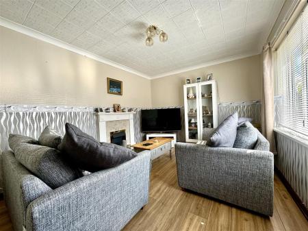 Lounge - 4.27m x 3.18m (14'0 x 10'5) - Fireplace housing electric fire, TV point, double radiator, wood laminate flooring, front aspect window.