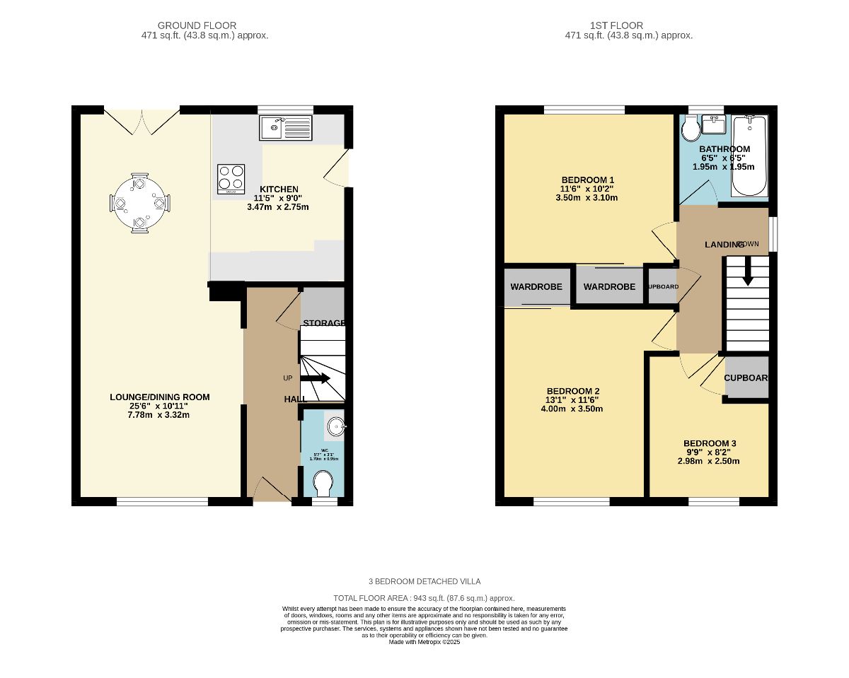 Lounge/diner w: 3.32m x l: 7.78m (w: 10' 11" x l: 25' 6")