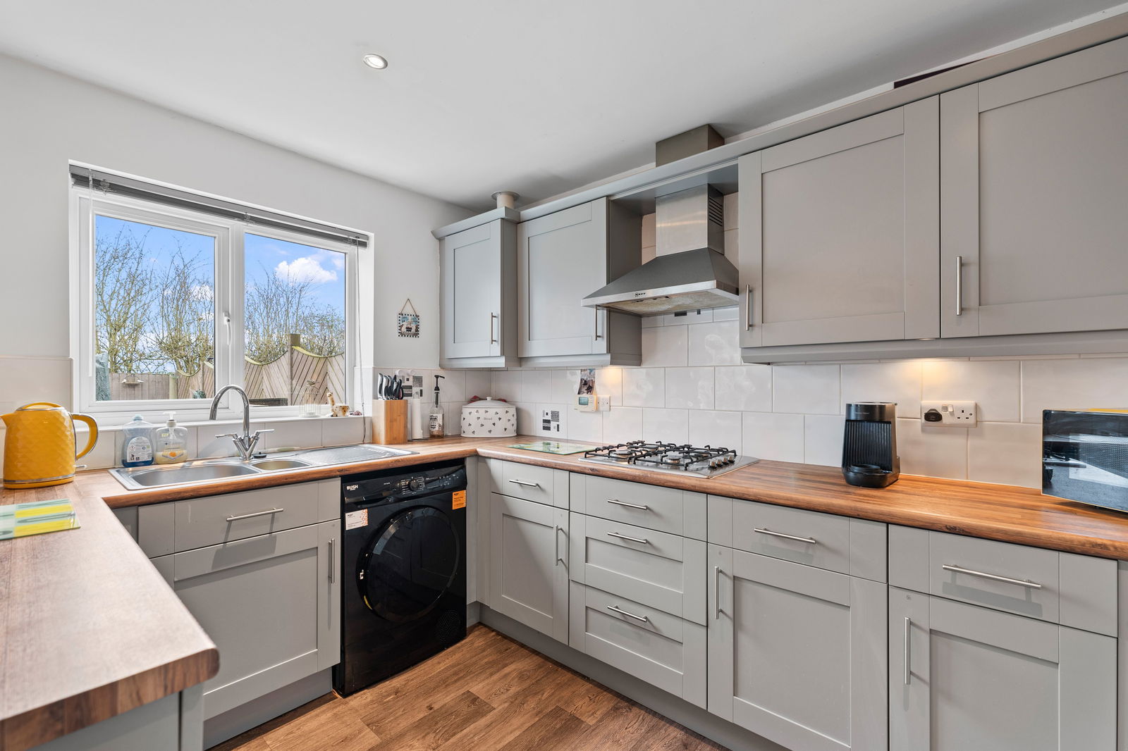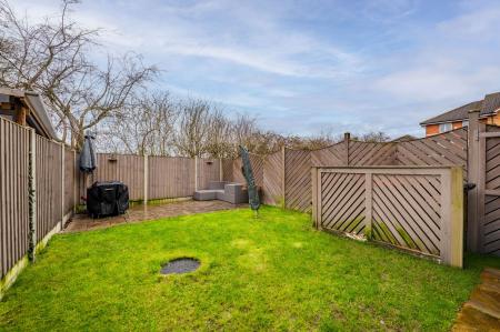 Externally, the property benefits from an ENCLOSED REAR GARDEN BACKING ONTO PLAYING FIELDS, offering additional privacy. To the front is a DRIVEWAY PROVIDING OFF-ROAD PARKING FOR TWO VEHICLES.
