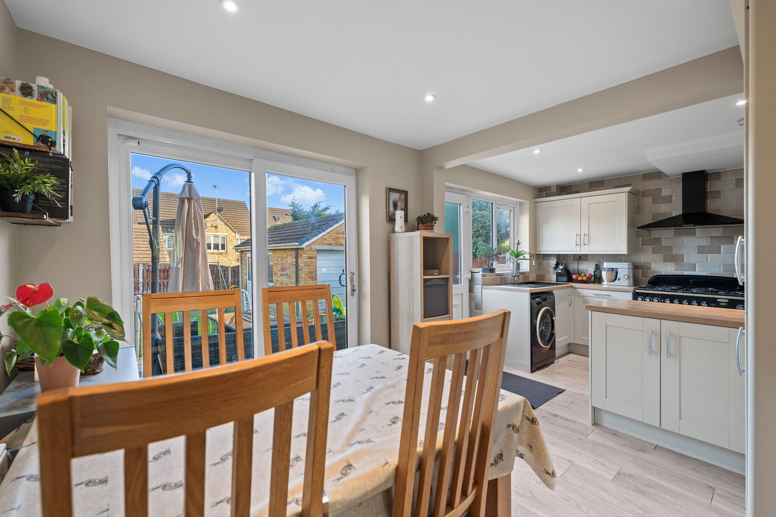 The property welcomes you with an ENTRANCE HALL leading into a cosy LOUNGE WITH LOG BURNER, creating a warm and inviting space to relax. To the rear is a MODERN DINING KITCHEN, which opens directly onto the garden, ideal for family living and entertaining.