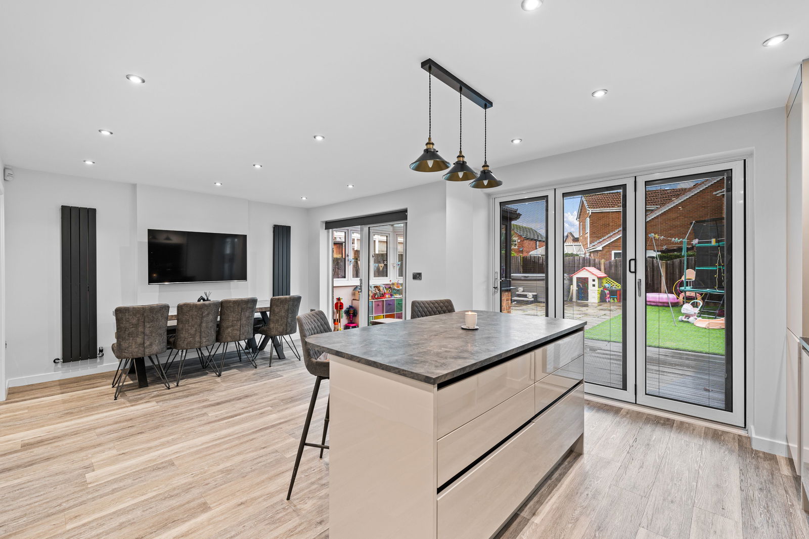 Finished to an excellent standard throughout, the home boasts a stunning OPEN PLAN KITCHEN AND DINING SPACE, creating the true heart of the property and an ideal setting for everyday family life or entertaining. This fantastic space is complemented by a SEPARATE UTILITY ROOM and a convenient DOWNSTAIRS WC.