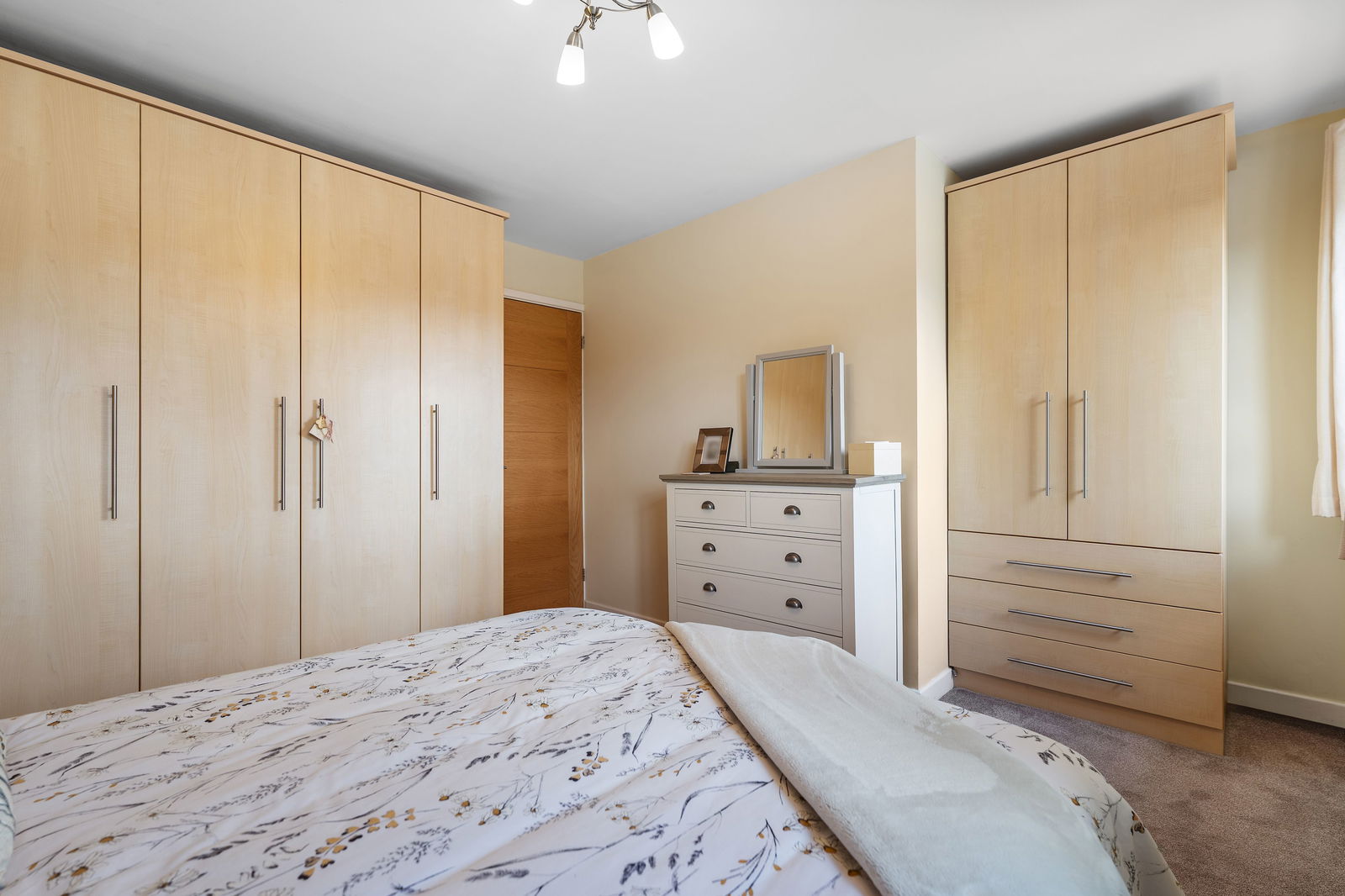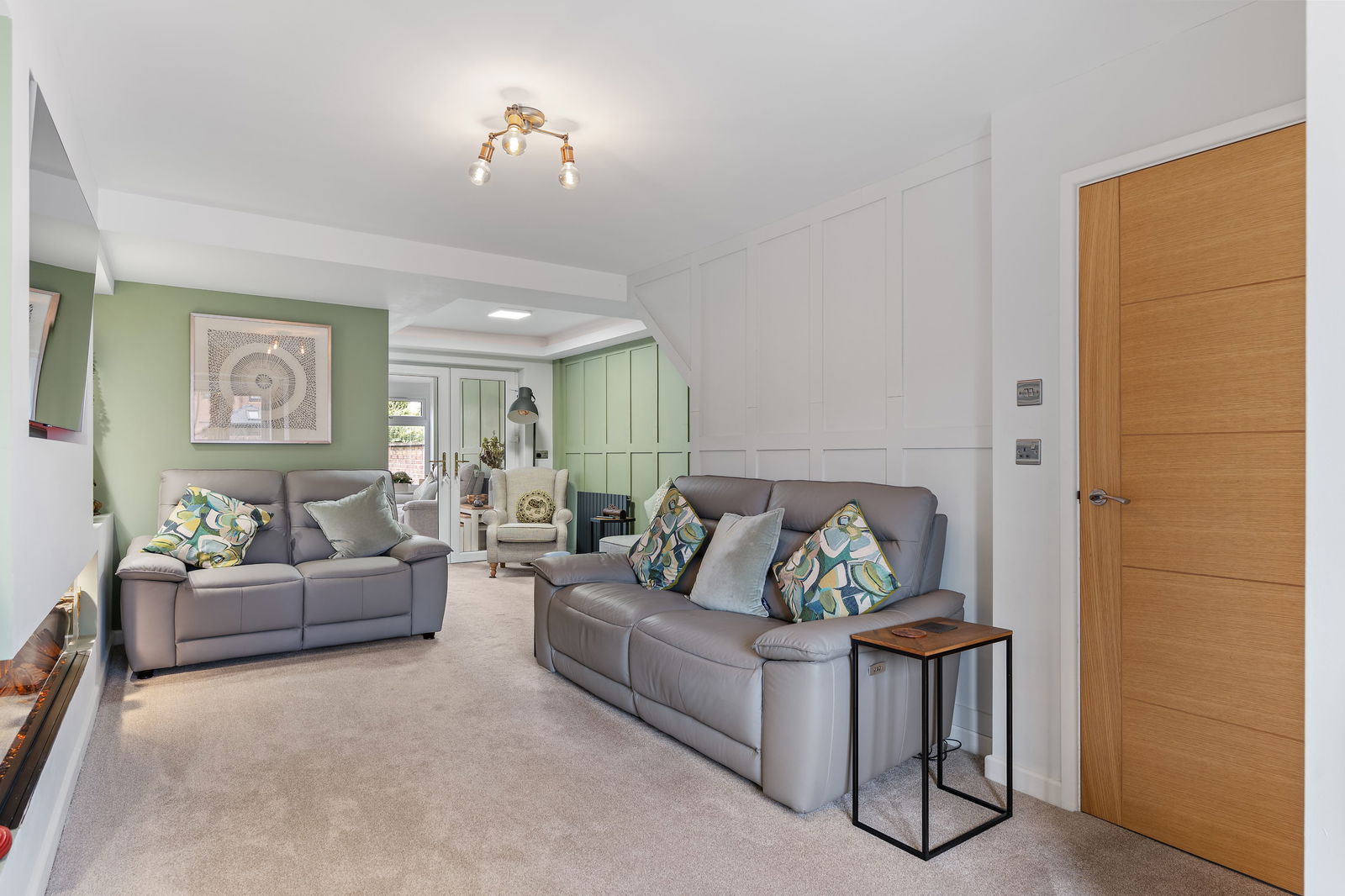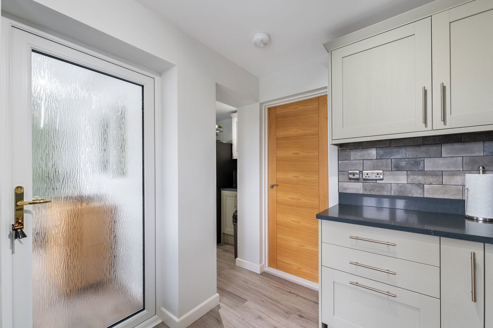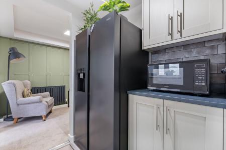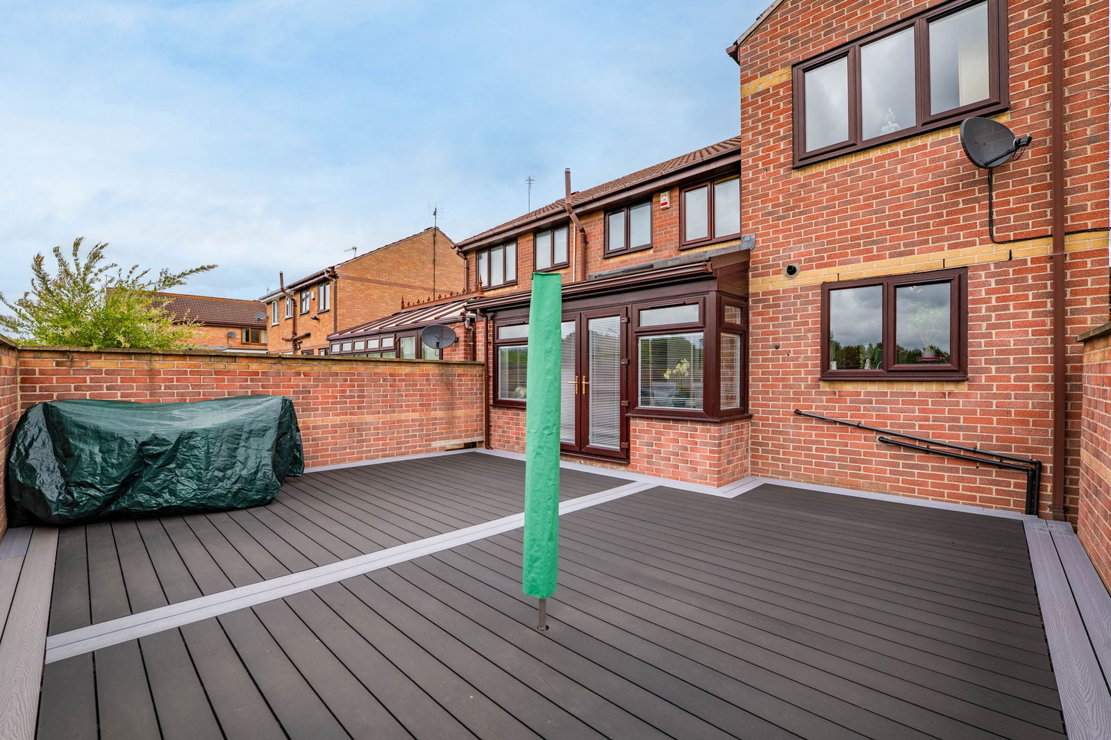 Externally, the property enjoys a FULLY DECKED REAR GARDEN – a low-maintenance and attractive space – with the added bonus of a GATE OPENING STRAIGHT ONTO PLAYING FIELDS, ideal for families with children or those who enjoy outdoor walks. To the front, there is a driveway providing off-road parking.