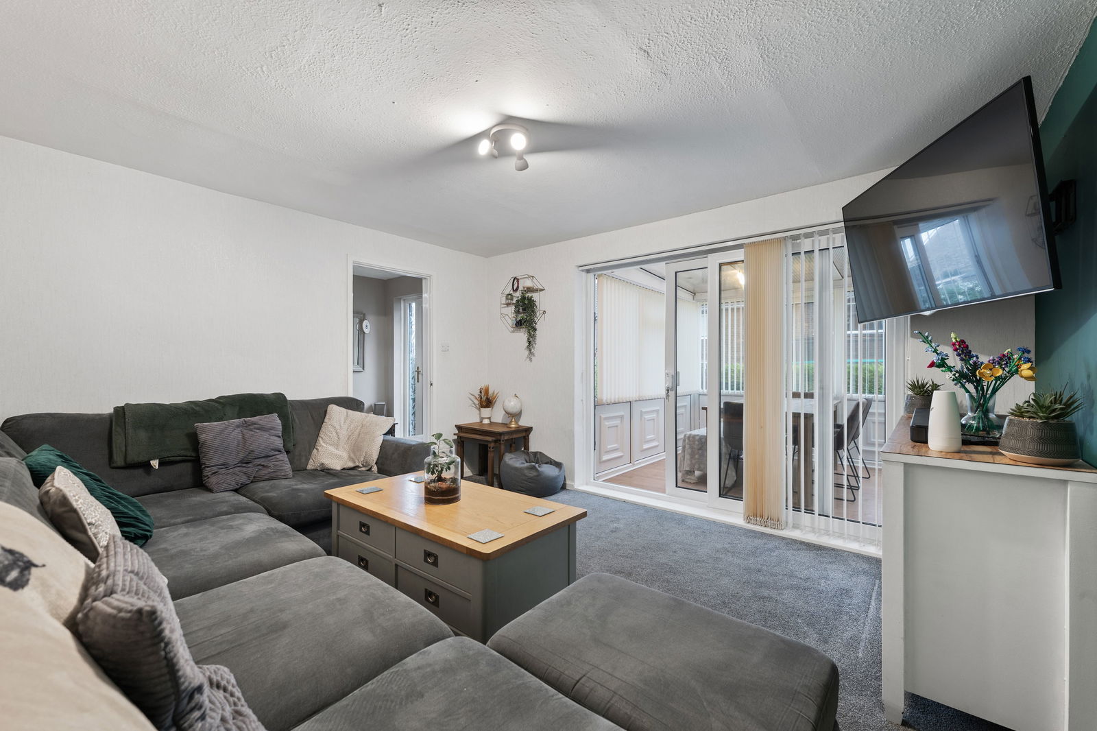 The home provides well-balanced living space, including a comfortable LOUNGE, a fitted KITCHEN, and a bright CONSERVATORY overlooking the rear garden. Upstairs are THREE WELL SIZED BEDROOMS and a family bathroom, offering plenty of space for a growing family.