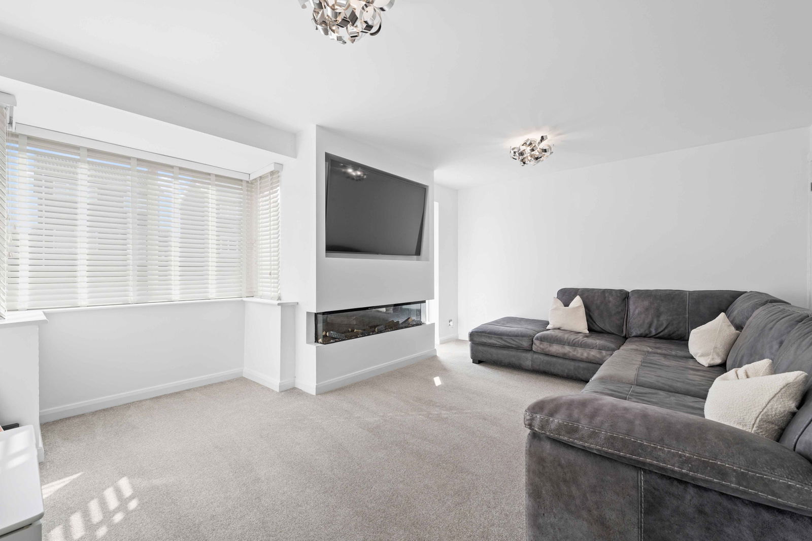 Inside, the home features a welcoming ENTRANCE HALL, a SPACIOUS LOUNGE WITH MEDIA WALL AND BUILT-IN FIREPLACE, creating a cosy and contemporary living space. The property also benefits from an EXTENDED DINING KITCHEN, providing a fantastic area for family meals and entertaining.
