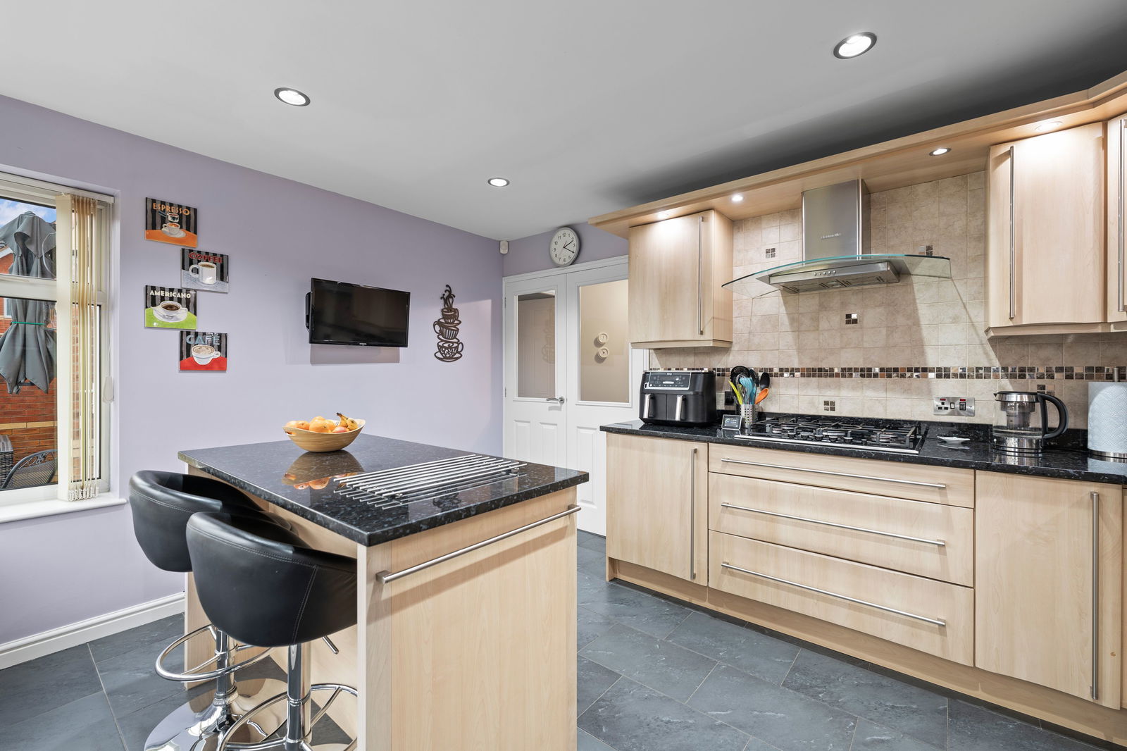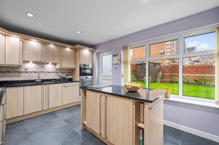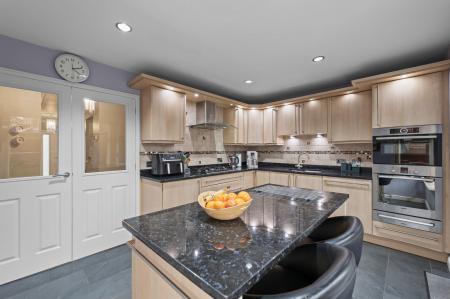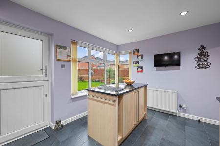 The property opens into a welcoming ENTRANCE HALL with a convenient GROUND FLOOR WC, A LOUNGE THROUGH DINER, creating a bright and sociable living space ideal for both family life and entertaining. The KITCHEN features a central ISLAND offering excellent functionality with plenty of workspace and storage.