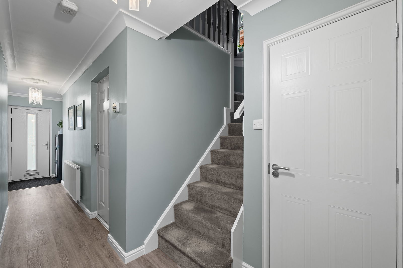 To the first floor are FOUR WELL PROPORTIONED BEDROOMS, including a main bedroom with EN-SUITE SHOWER ROOM, along with a MODERN FAMILY BATHROOM serving the remaining bedrooms. The layout provides flexibility for growing families or those working from home.