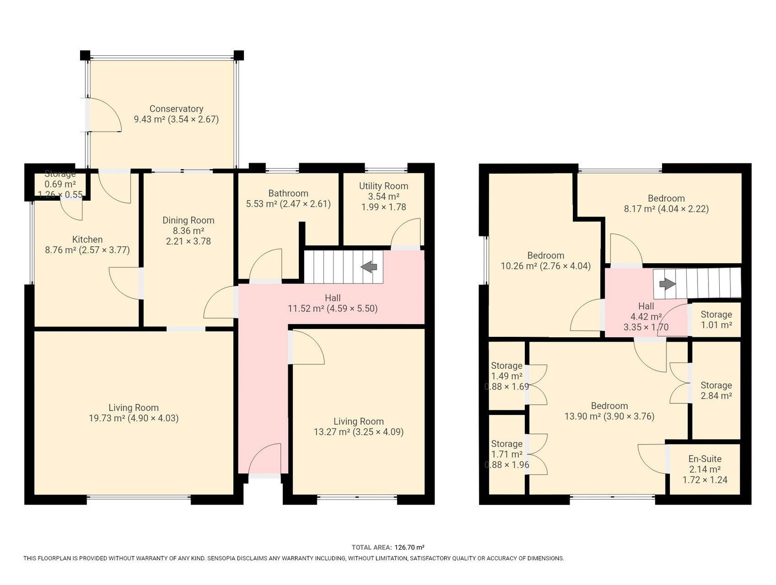 The ground floor comprises a generous lounge, dining room, conservatory, kitchen, utility room, family bathroom, and a versatile room that could serve as a fourth bedroom or an additional reception space. Upstairs, there are three further bedrooms, including a principal bedroom with en suite facilities.
