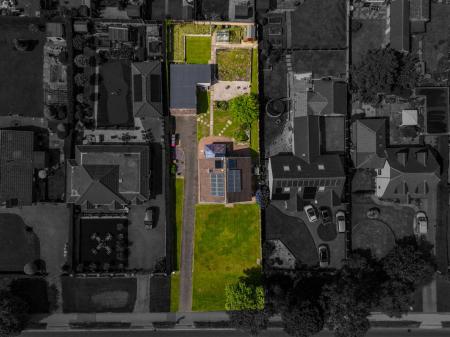 Outside, the home boasts a SUBSTANTIAL FRONTAGE WITH A LAWNED AREA and a LARGE DRIVEWAY offering ample parking for multiple vehicles, leading to a detached garage and a SUPERBLY SIZED REAR GARDEN—perfect for families, entertaining, or future development.