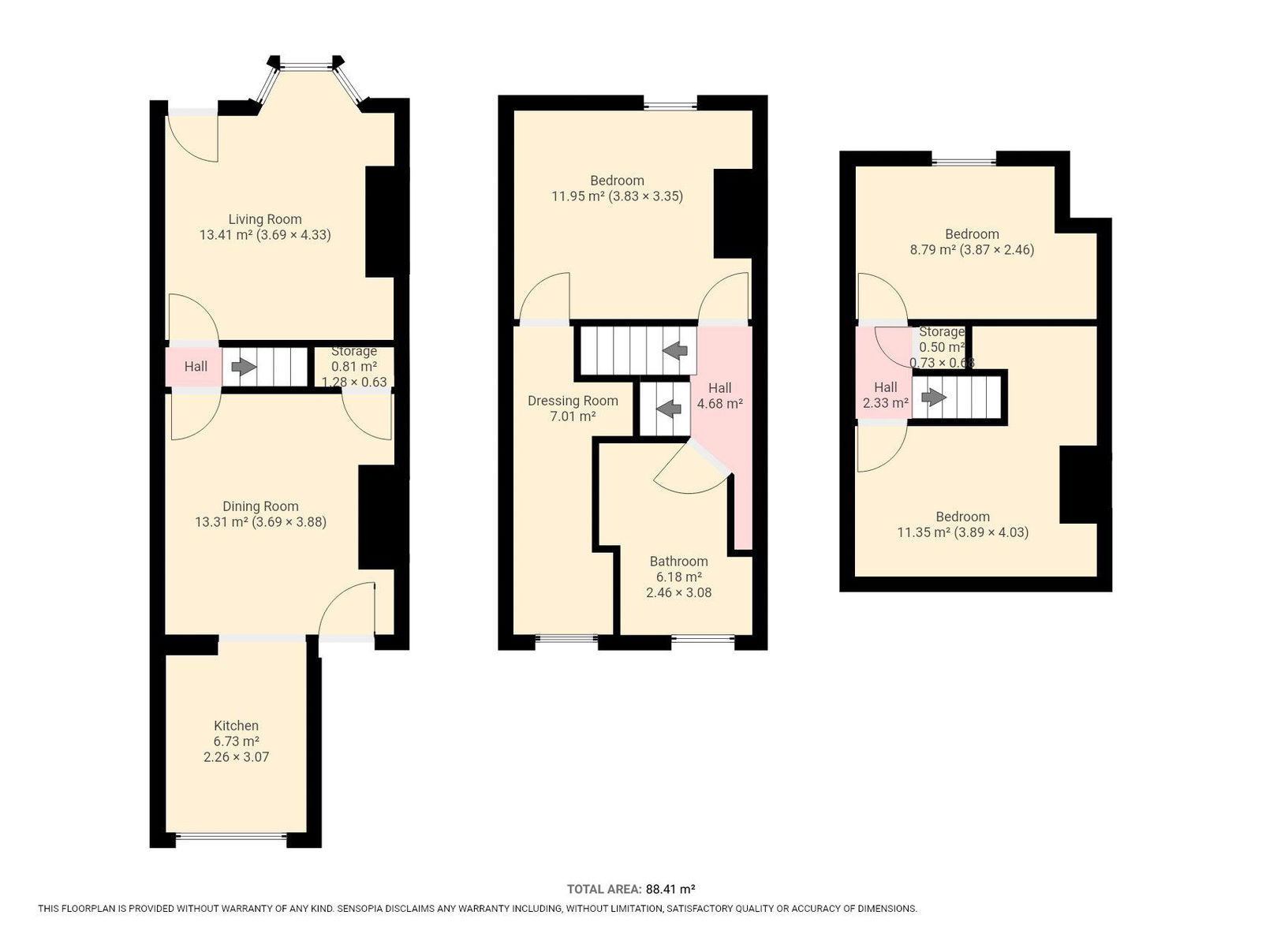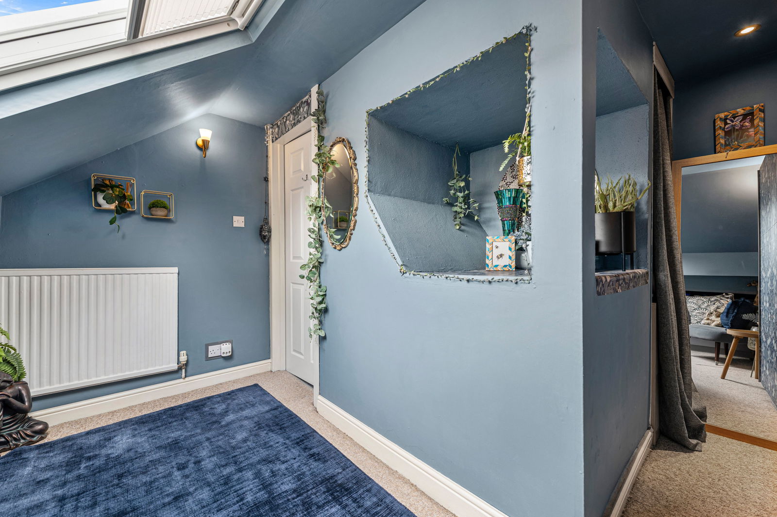 On the ground floor, there are TWO RECEPTION ROOMS – a welcoming lounge and a dining room that flows into a MODERN KITCHEN area. The first floor features a GENEROUS DOUBLE BEDROOM with dressing/wardrobe space and a MODERN BATHROOM. To the second floor, a further BEDROOM is complemented by an ADDITIONAL ROOM, perfect as a dressing room, office, or reading room.