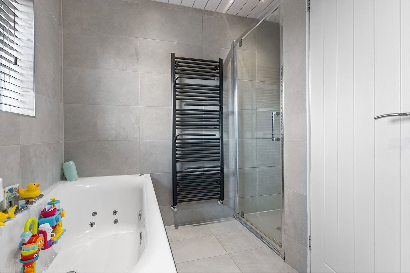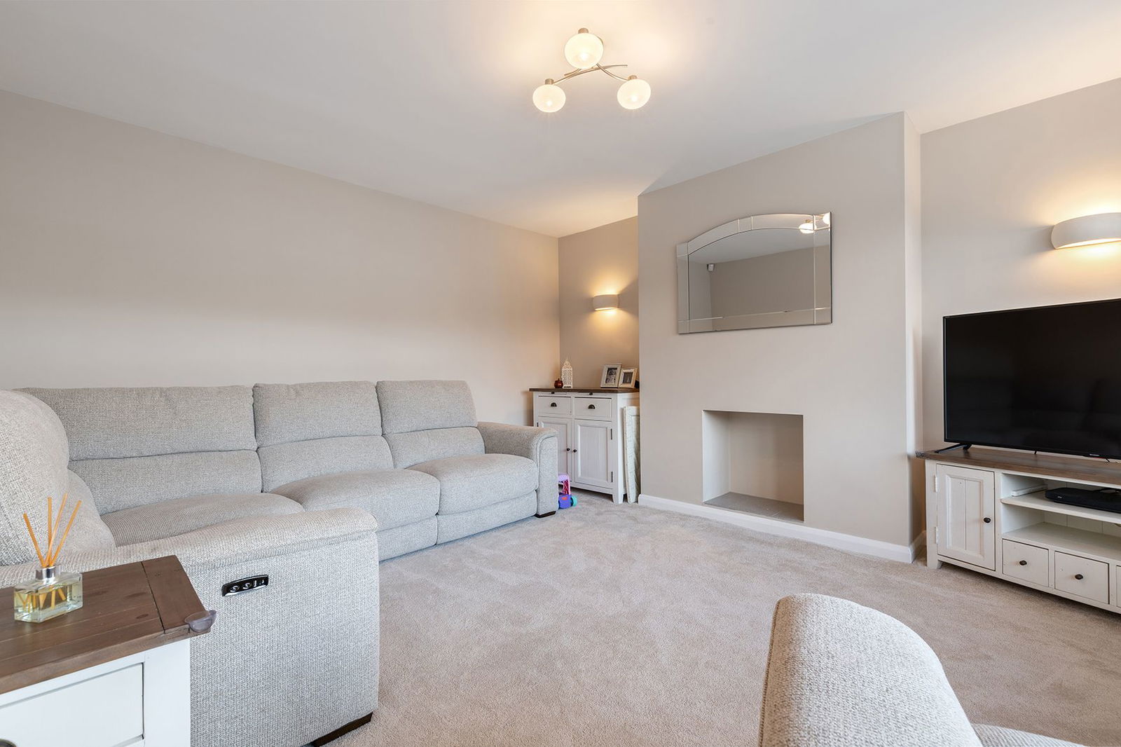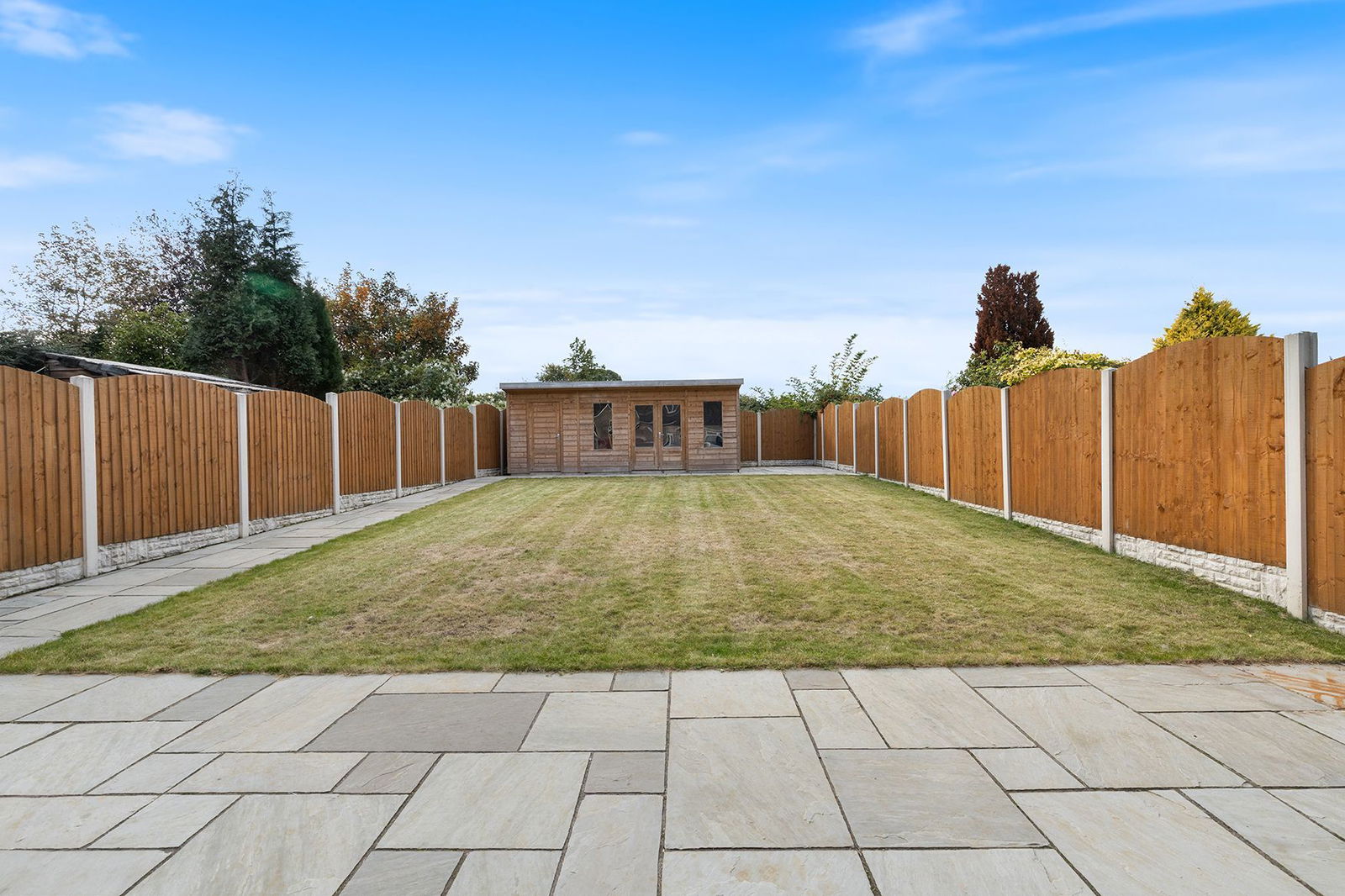 Upstairs, there are THREE WELL PROPORTIONED BEDROOMS and a MODERN FAMILY BATHROOM, complete with a bath and separate shower. Outside, the property benefits from a DRIVEWAY PROVIDING OFF ROAD PARKING and a GENEROUS REAR GARDEN backing onto PLAYING FIELDS, including a SUMMERHOUSE/OUTBUILDING – a perfect space for relaxing or outdoor activities.