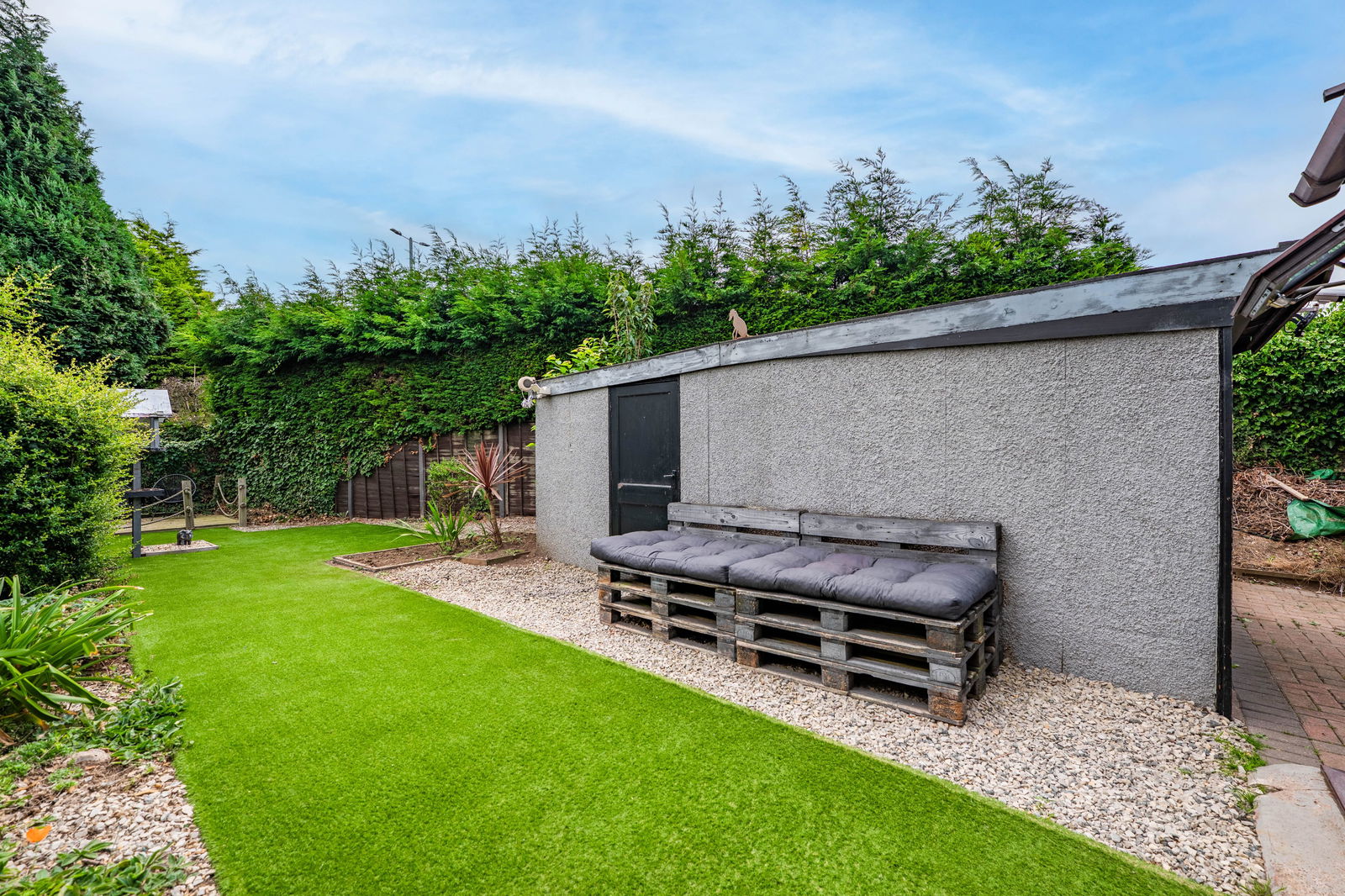 Outside, the property enjoys an ATTRACTIVE and PRIVATE REAR GARDEN, perfect for relaxing or entertaining. To the front, a DRIVEWAY provides off-road parking and leads to a GARAGE set back from the house, offering further storage or parking options.