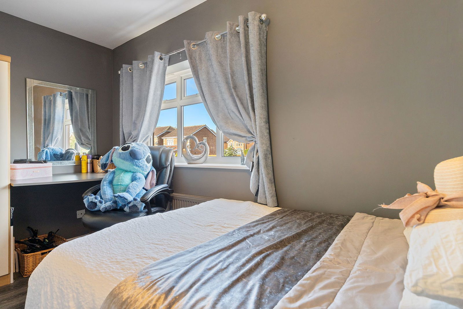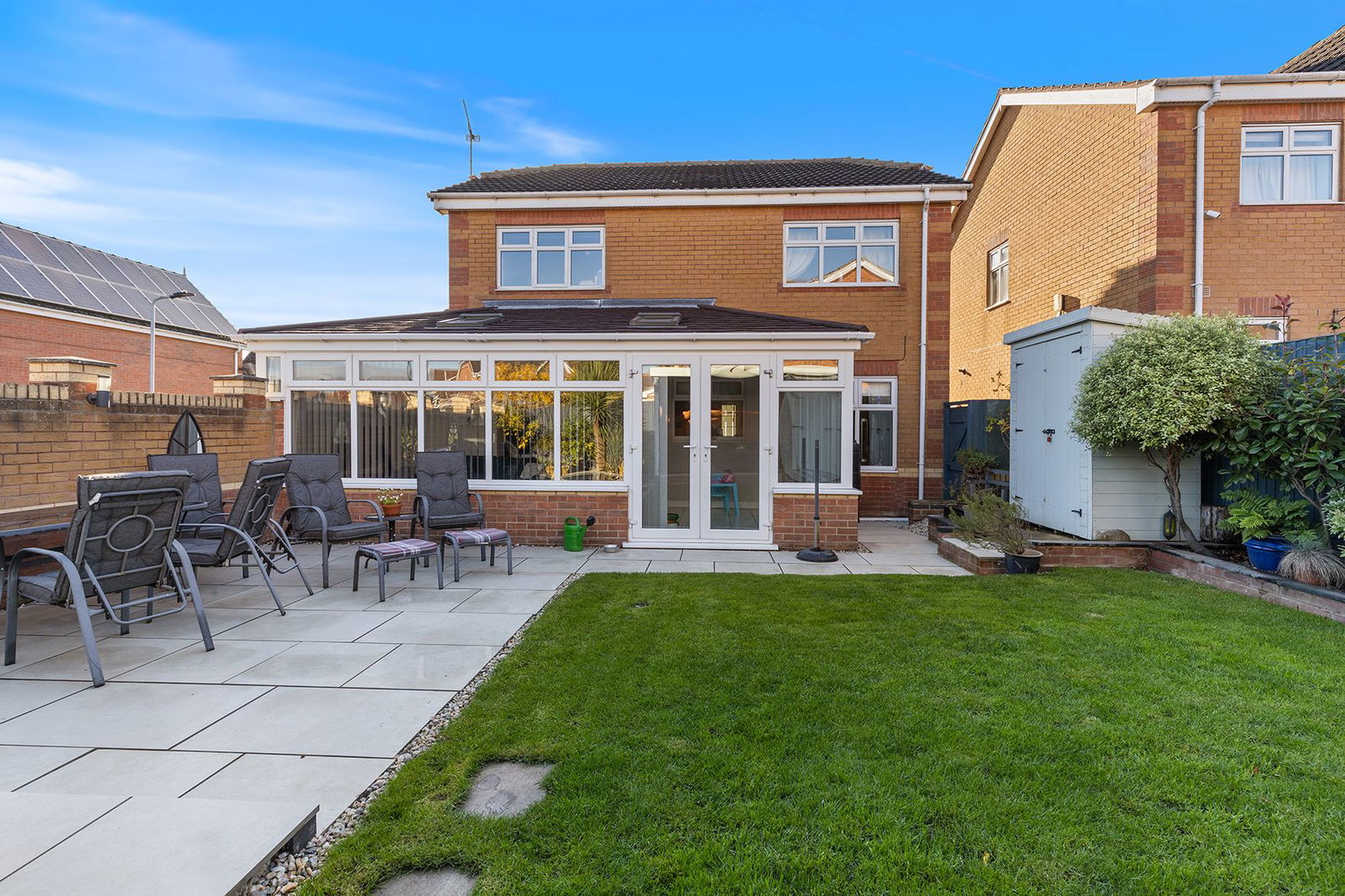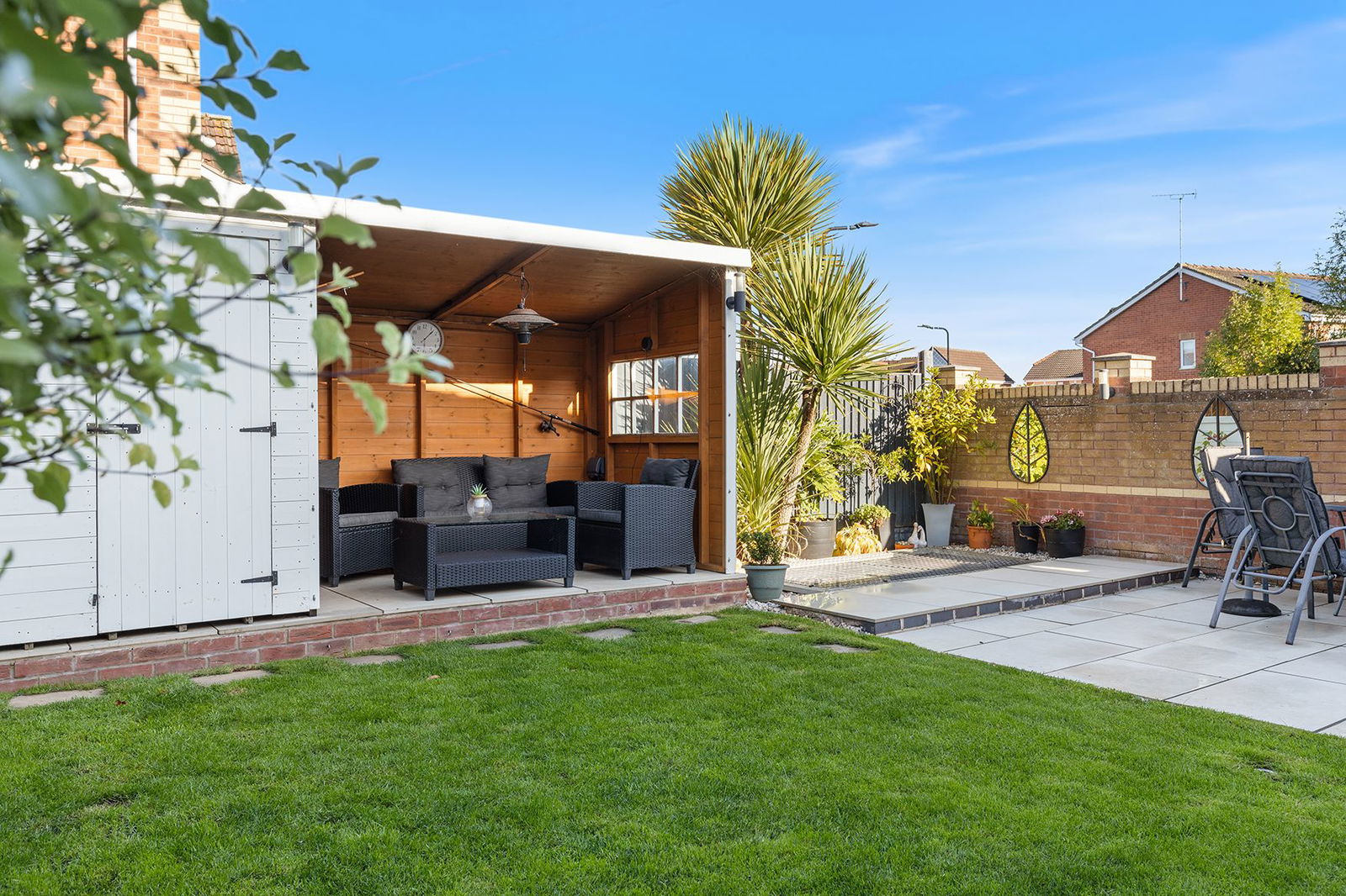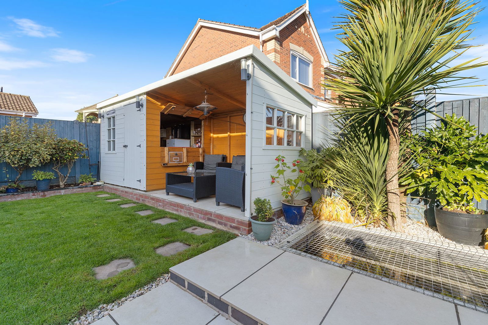 Externally, the home sits on a GENEROUS PLOT with an ATTRACTIVE REAR GARDEN, including a UNIQUE OUTDOOR BAR AREA – ideal for summer entertaining. To the front, a DRIVEWAY provides off-road parking, leading to a GARAGE for additional storage.